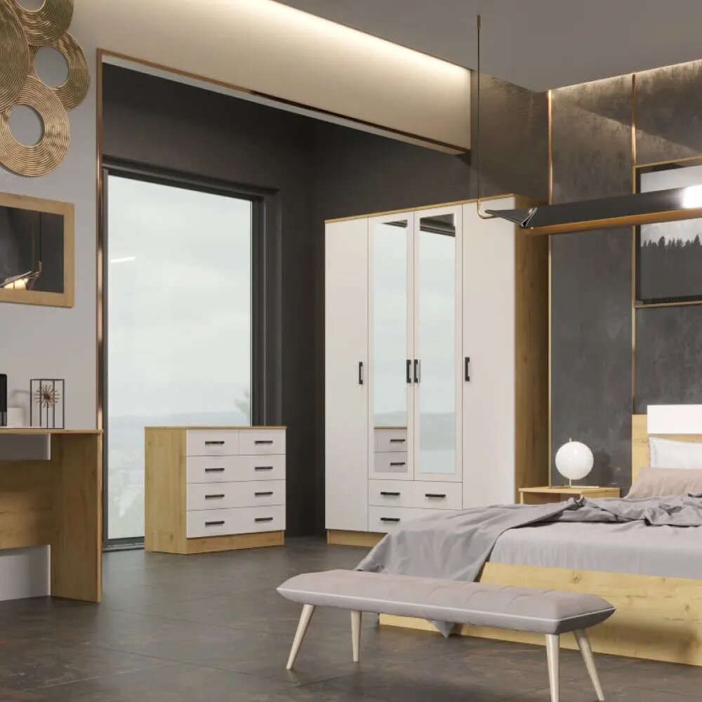 Комод Адель 800-4я, Дуб вотан/Белый/Цемент темный