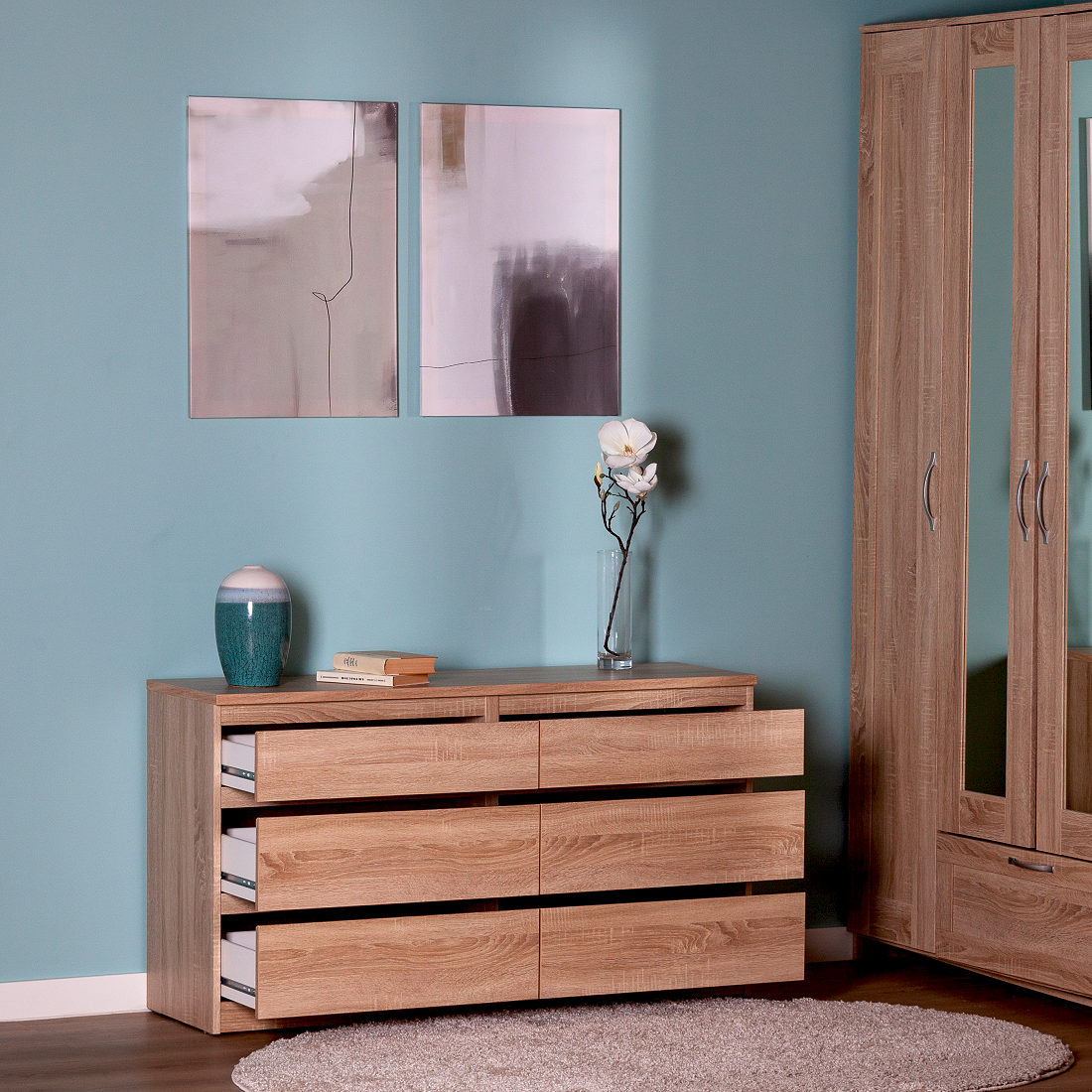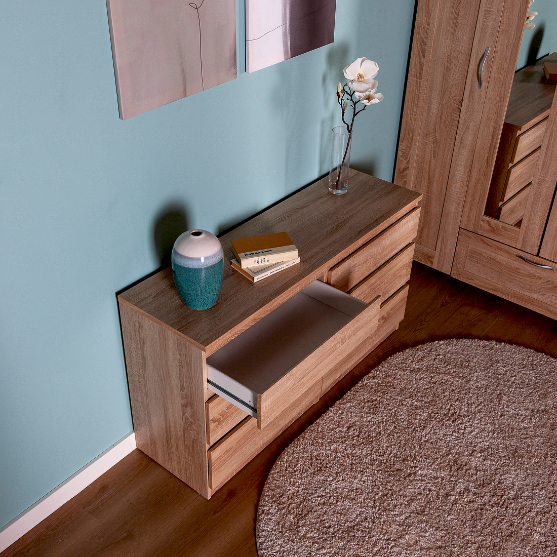Комод ГУД ЛАКК Кастор, 6 ящиков, 129х39х71 см, дуб сонома