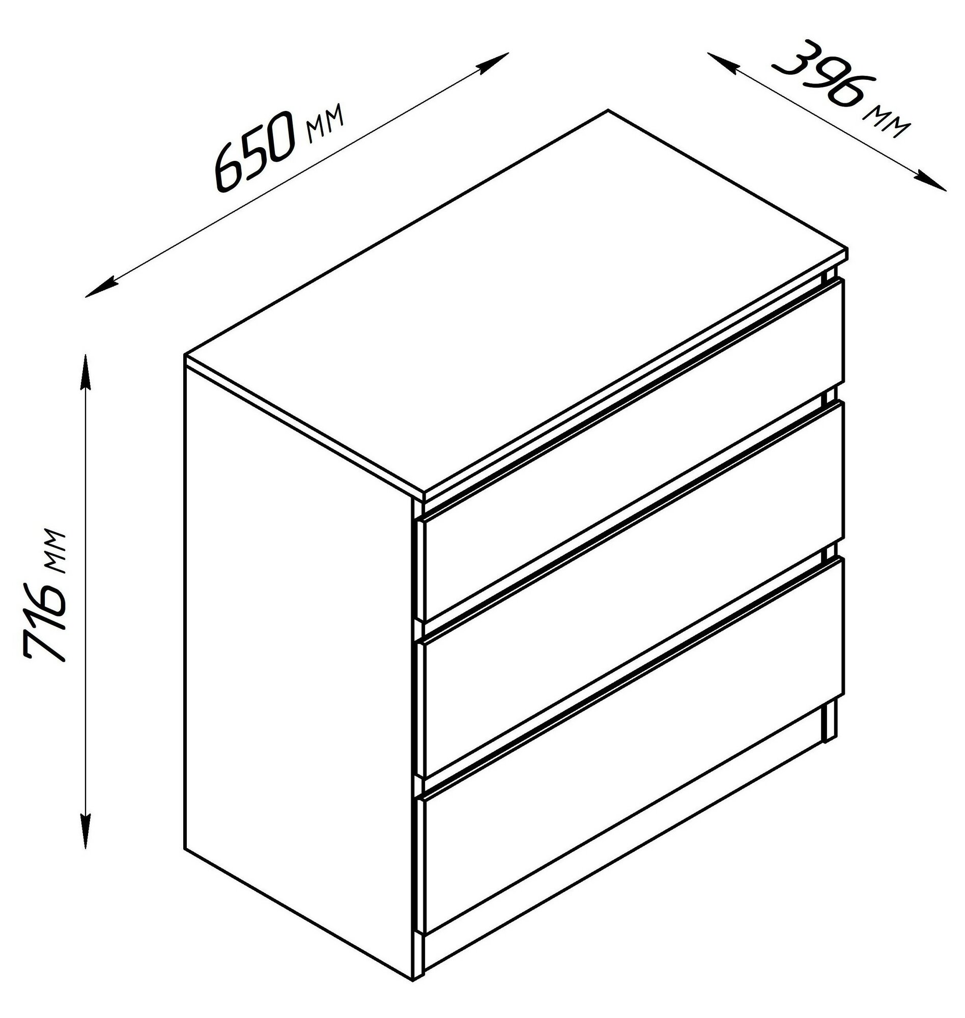 Комод кастор с тремя наружными выдвижными ящиками, 650х396х716, цвет Белый.