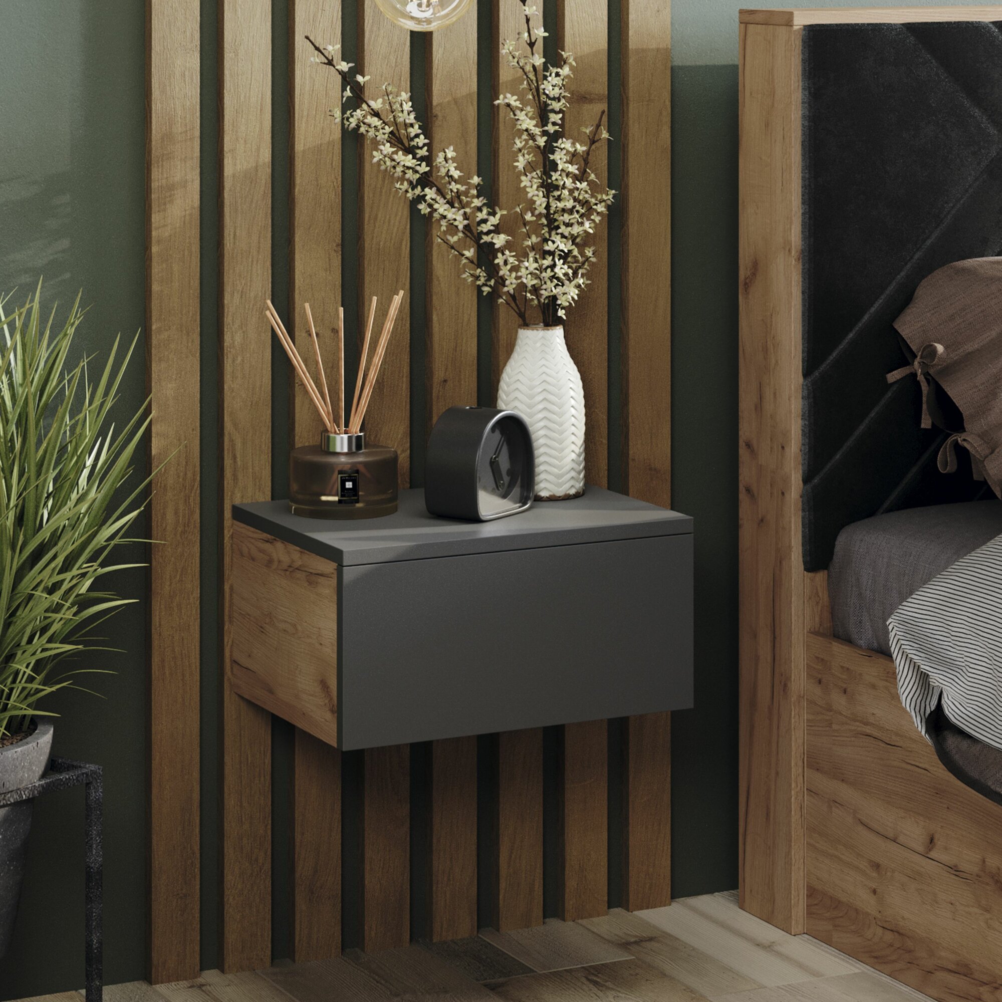 Тумба прикроватная , тумба подвесная Тип 2 ( Графит Серый/Дуб Крафт Золотой)