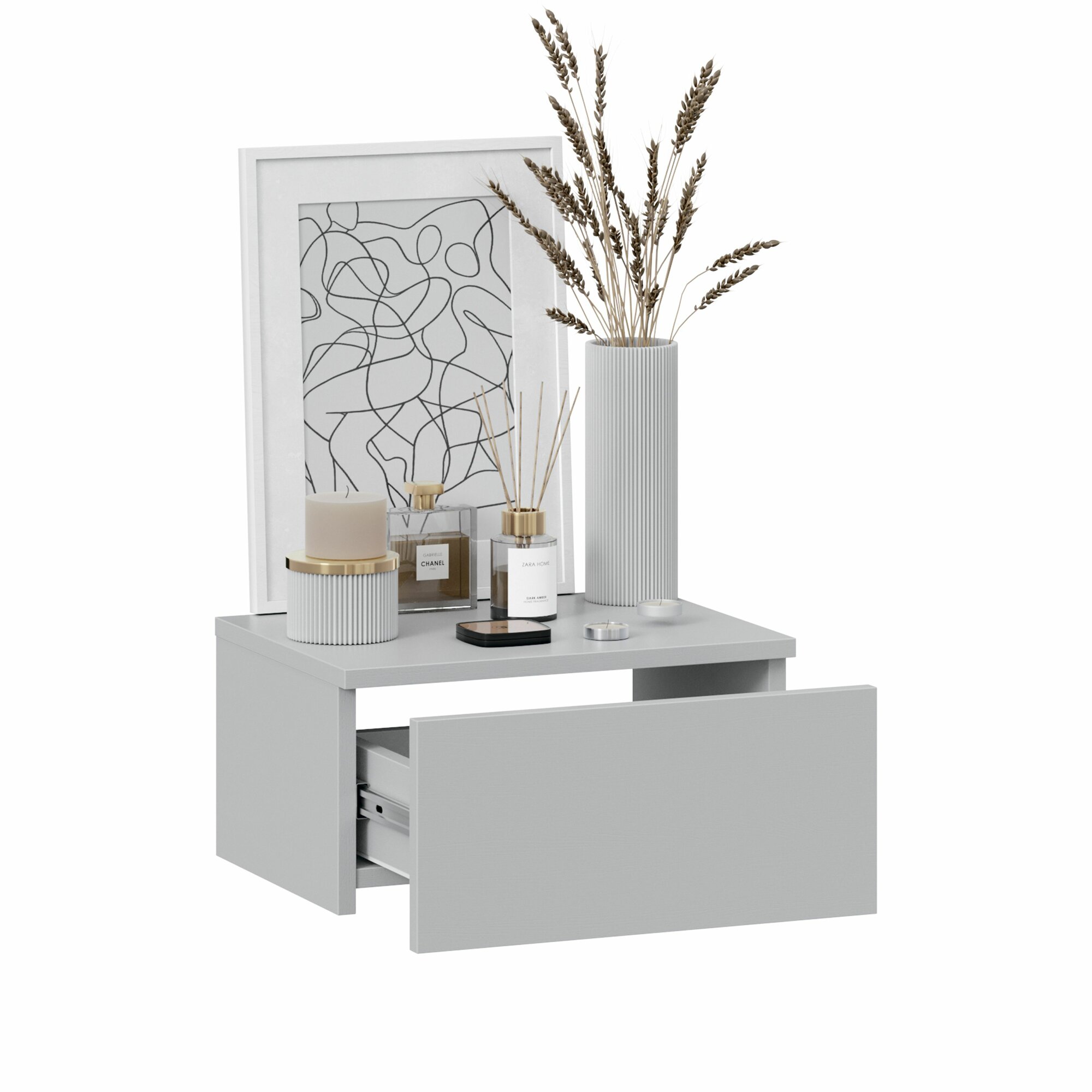 Тумба прикроватная Мебель Трия "Тип 1", подвесная, ЛДСП, шариковые направляющие, серая