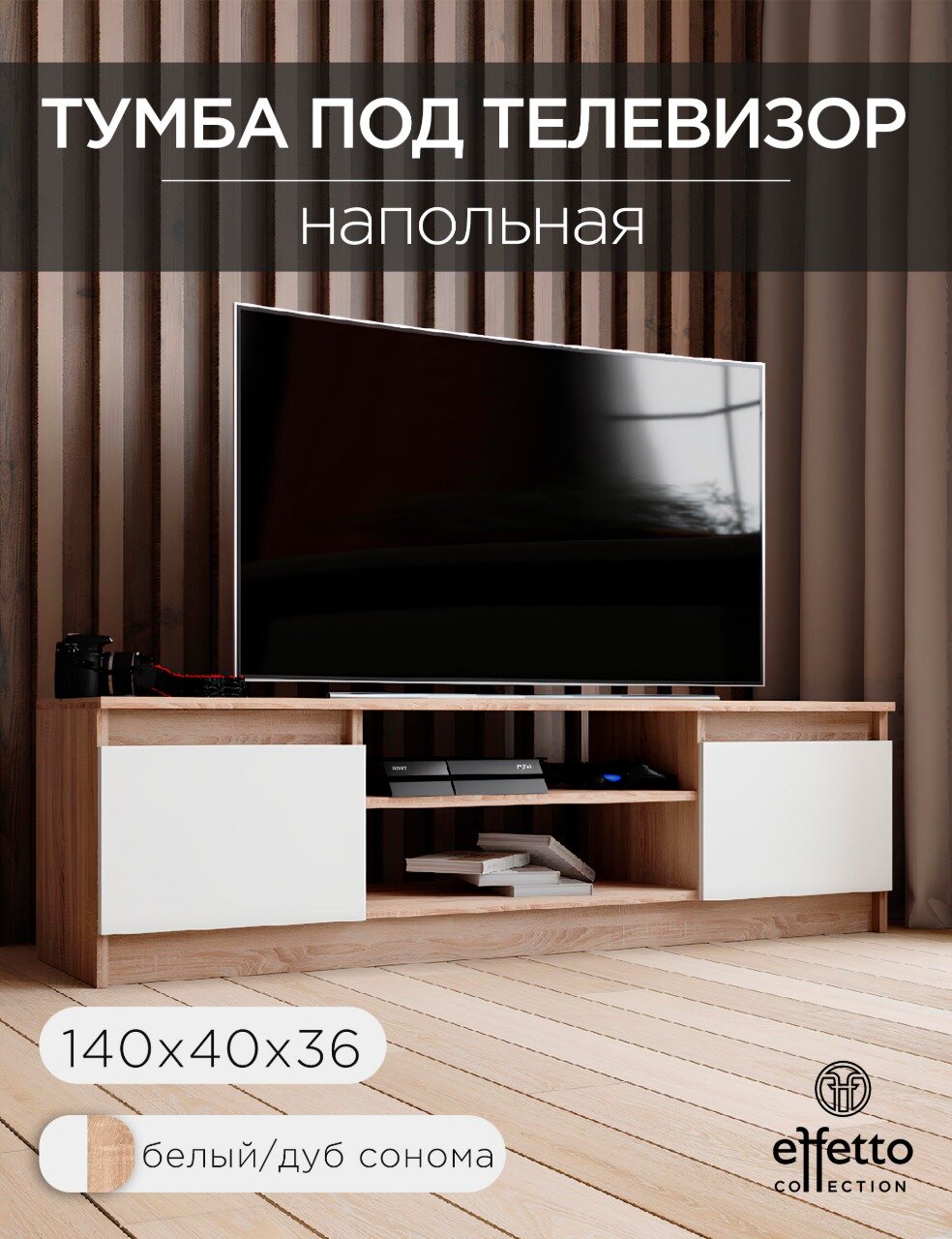 Тумба ТВМ-3 для телевизора, 140х36х40 см, 4 полки, дуб сонома, белый