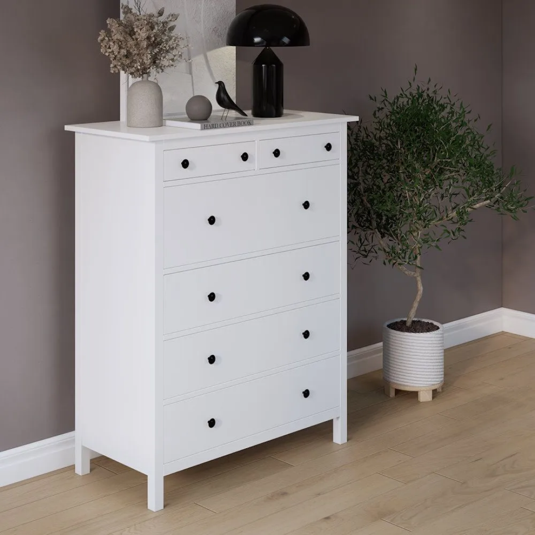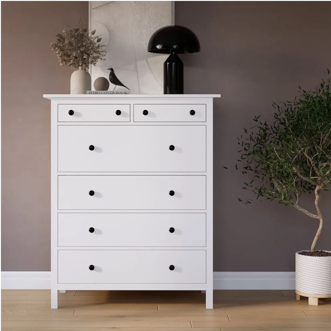 Комод с 6 ящиками деревянный, Хемнэс/Кымор, 108х50х130 см, белый