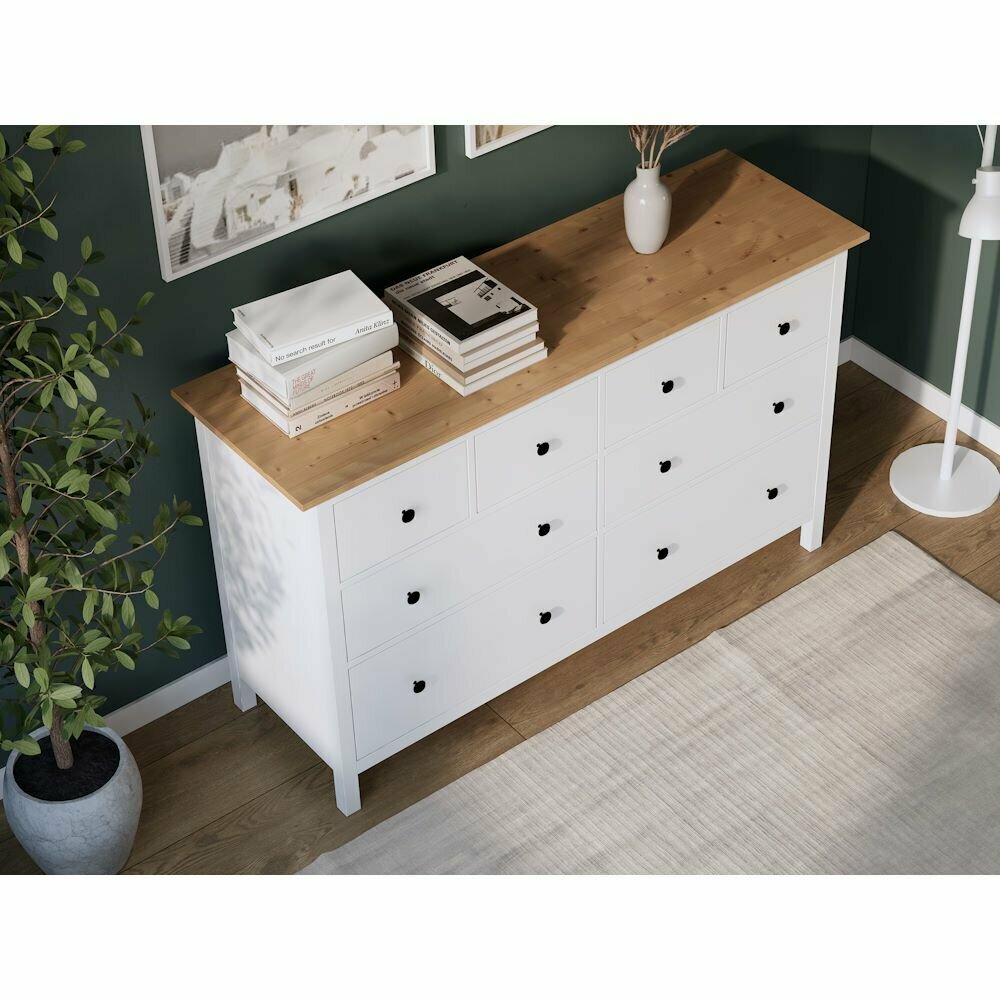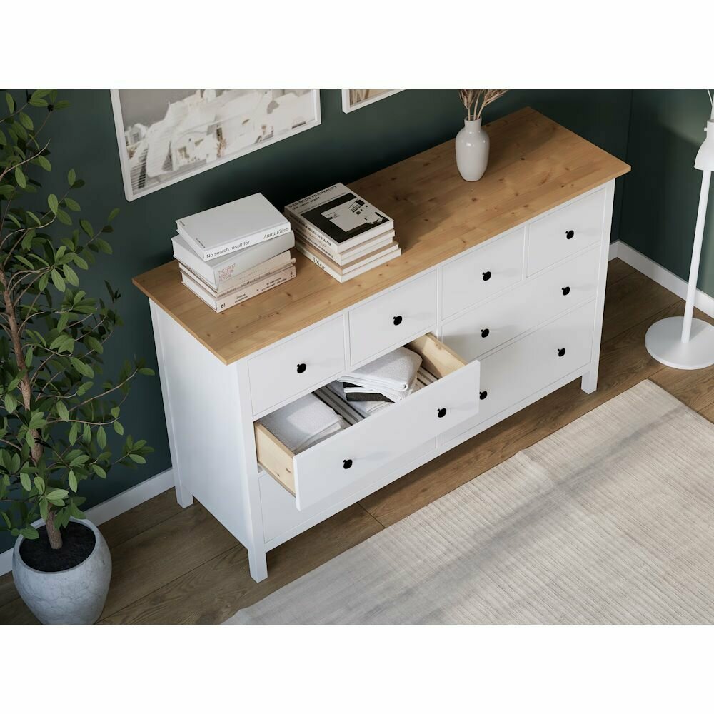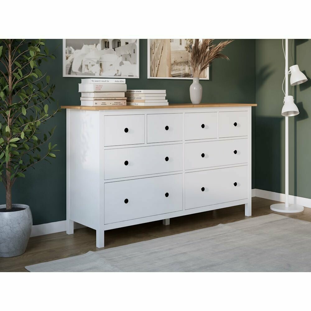 Деревянный комод 8 ящиков белый/светло-коричневый хемнэс, 160х50х96 см, Profi&Hobby