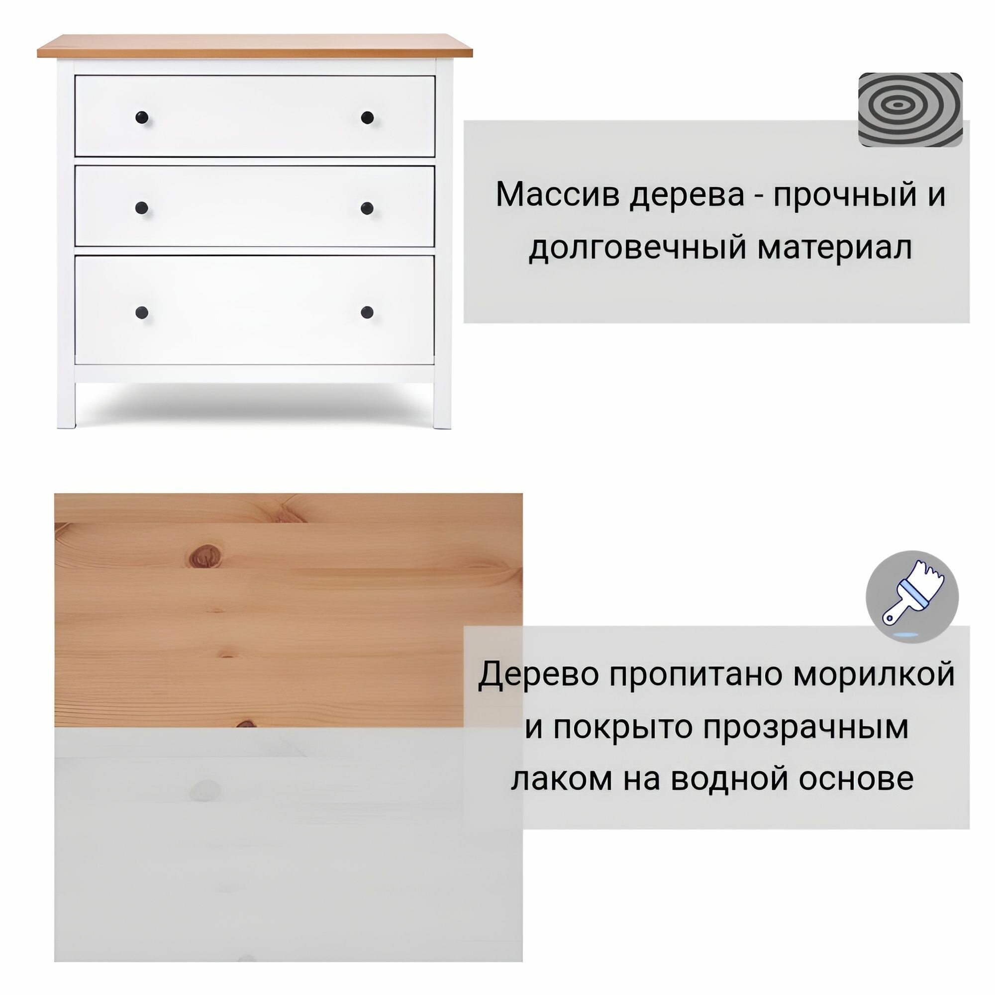 Комод с ящиками для одежды белый/светло-коричневый, Кымор (Hemnes Ikea), 3 ящика, 108х50х96 см
