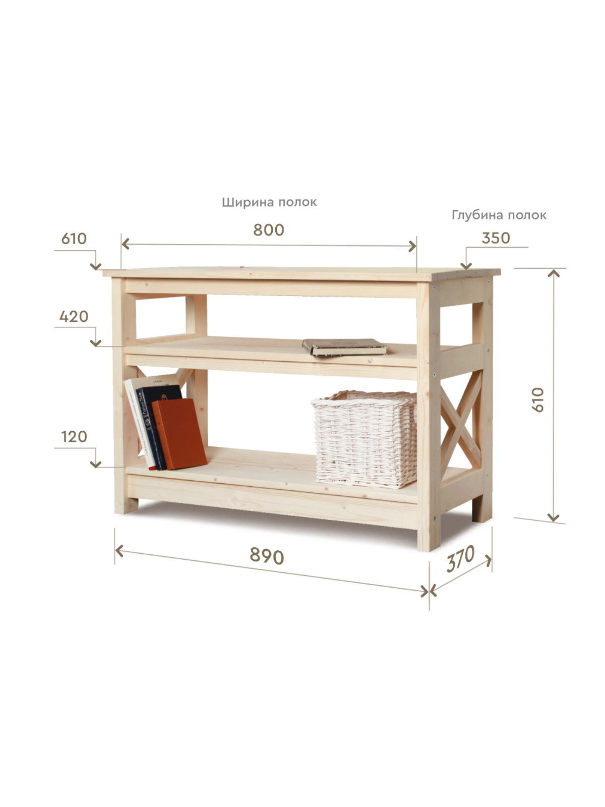 СохранитьТумба прикроватная деревянная 610х890х400мм этажерка напольная в стиле Прованс широкая интересное:
