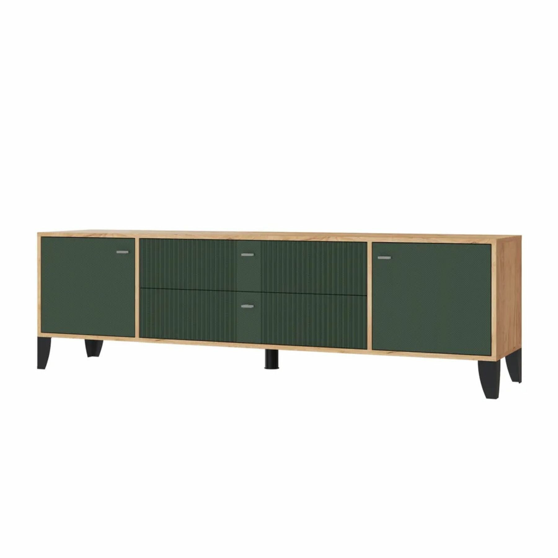Тумба ТВ «Парус-10», дуб крафт золотой/карбон дарк грин (1800х400х530)