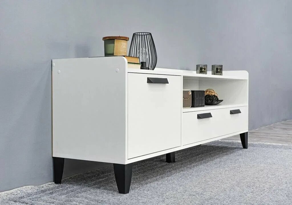 Тумба ТВ Мебельный Рай "Парус-10", с ящиками, белый, 180см x 40см x 53см