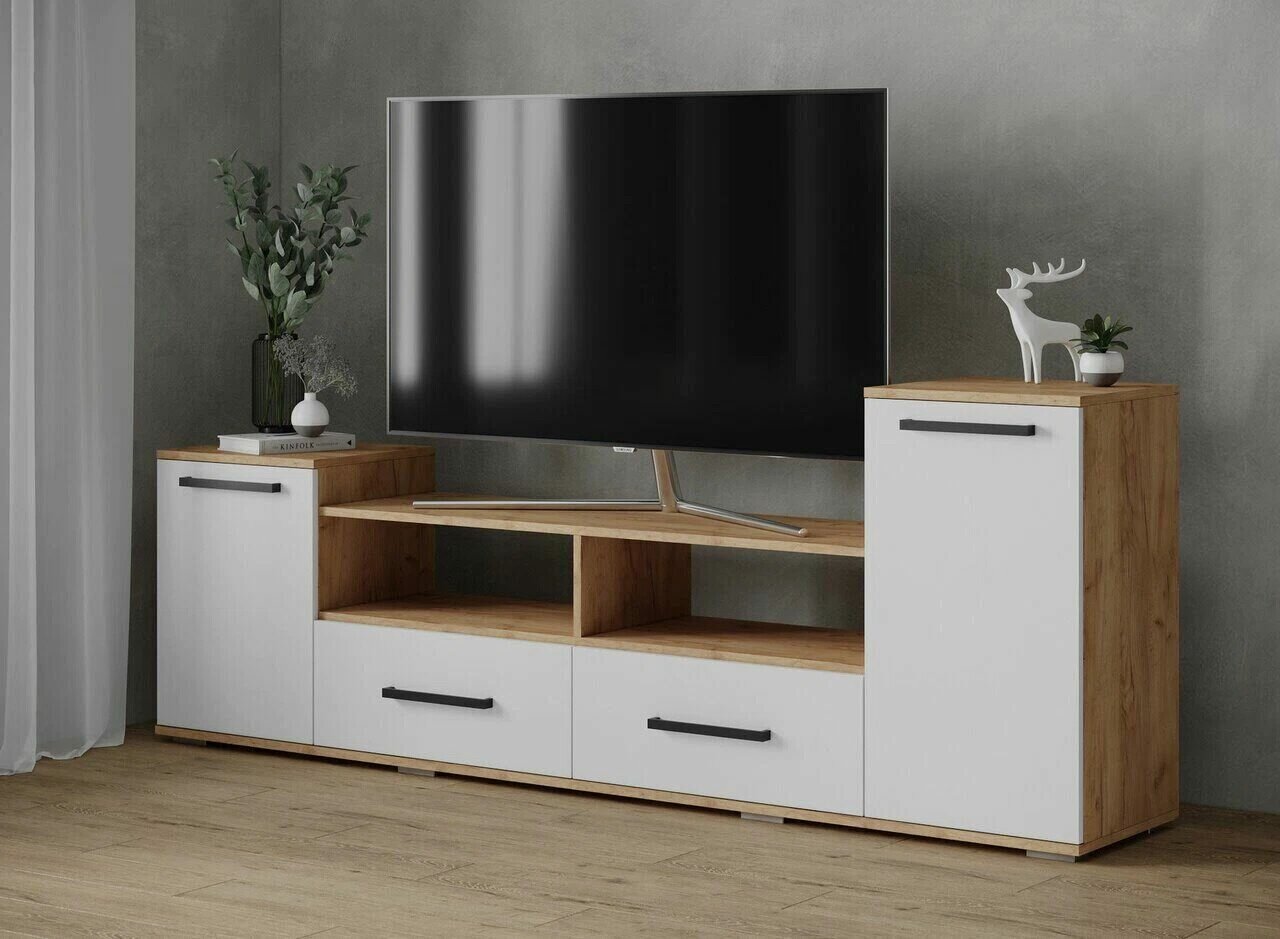 СохранитьТумба ТВ в гостиную «Парус-2», дуб крафт золотой/белый (2000х375х750) интересное: