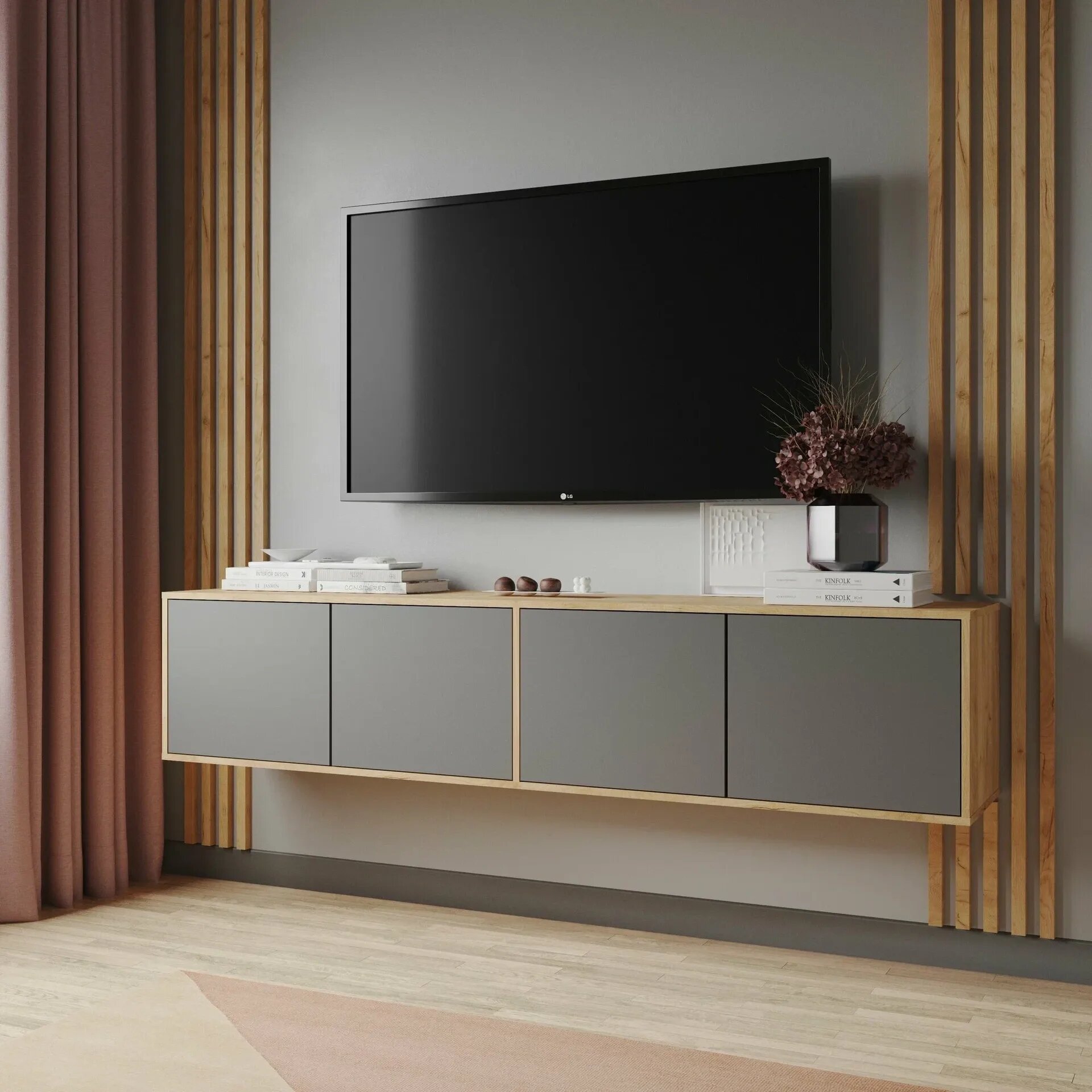 СохранитьТумба ТВ в гостиную «Парус-11», дуб крафт золотой/графит серый (1800х400х530) интересное: