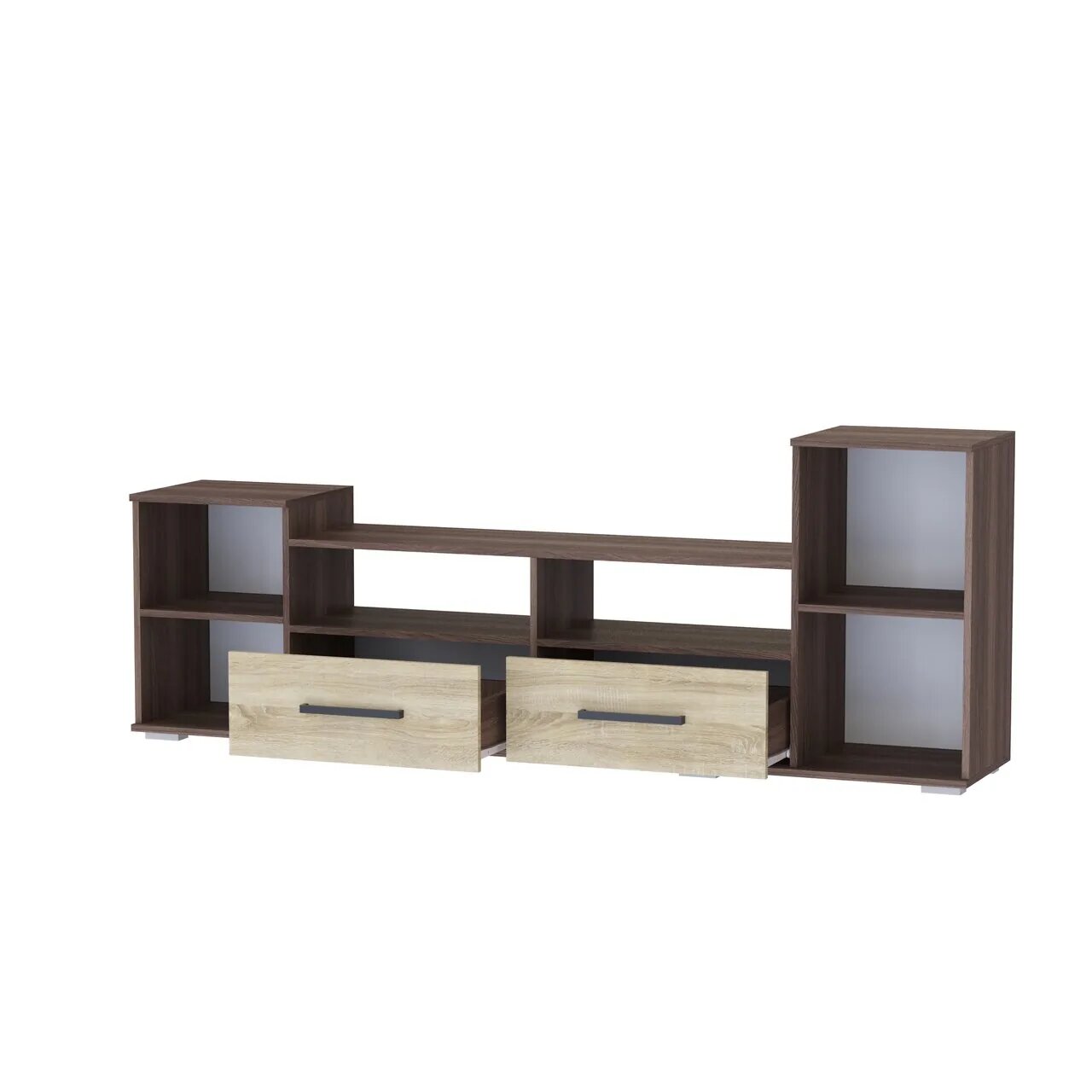 Тумба ТВ-003с, Венге Цаво/Дуб молочный, ЛДСП, с открытыми и закрытыми полками, для гостиной, спальни, 660х1200х380, тэкс