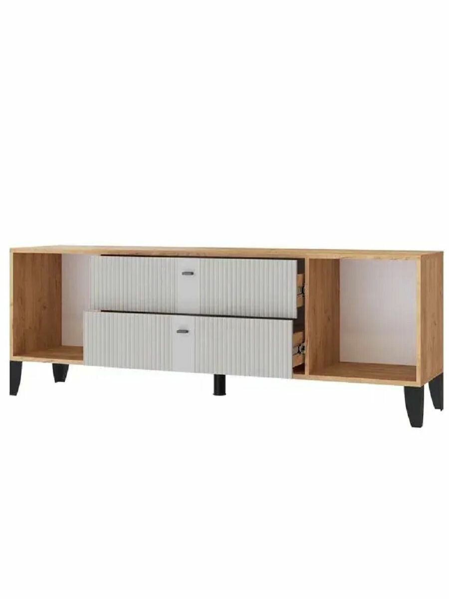 Тумба ТВ 011(2я) Дуб Крафт золотой/Белый с тиснением "Древесные поры" ЛДСП с ящиками, полками для гостиной, спальни, 665х800х430, тэкс