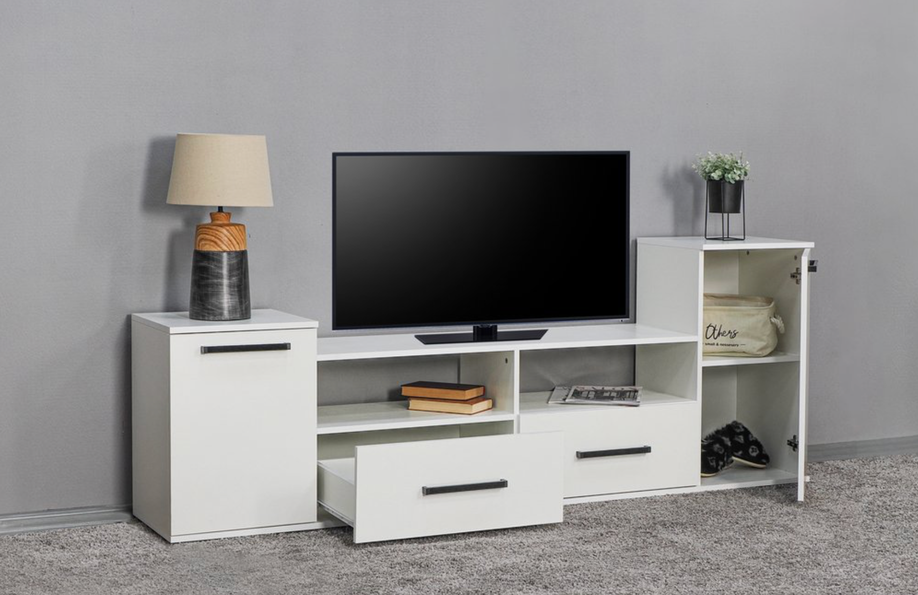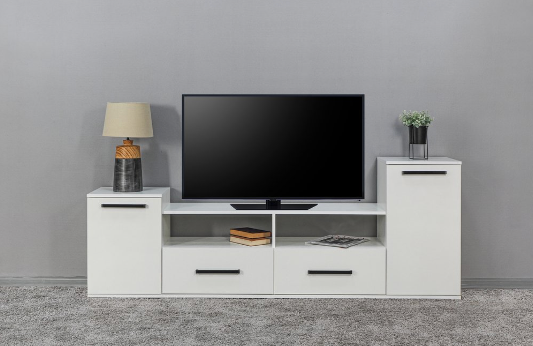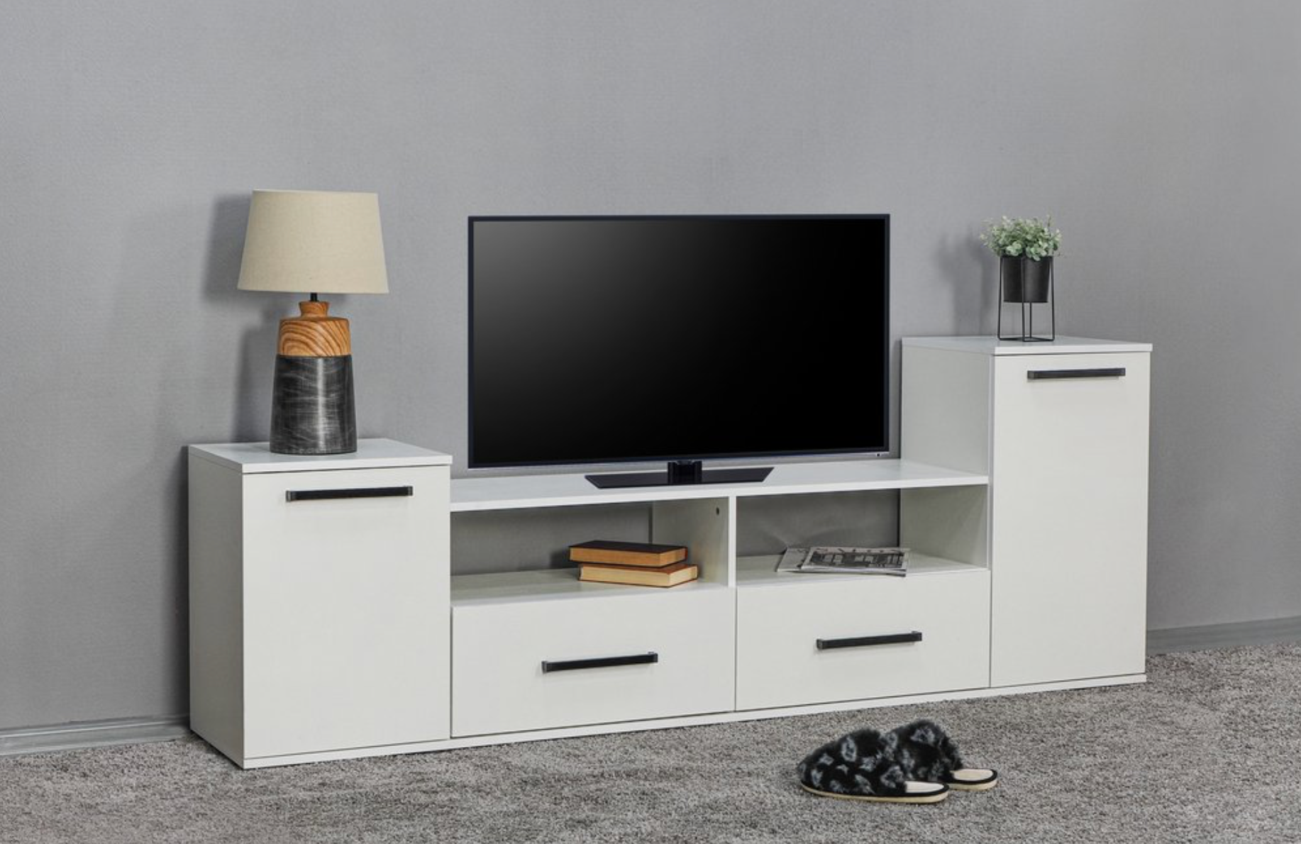 Тумба под телевизор ТВ 011-2я, с ящиками, белый (800х430х665)