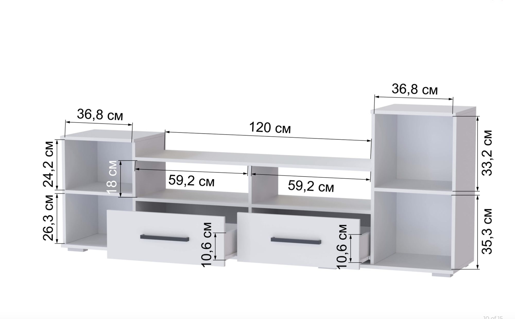 Тумба ТВ Мебельный Рай "Парус-10", с ящиками, белый, 180см x 40см x 53см