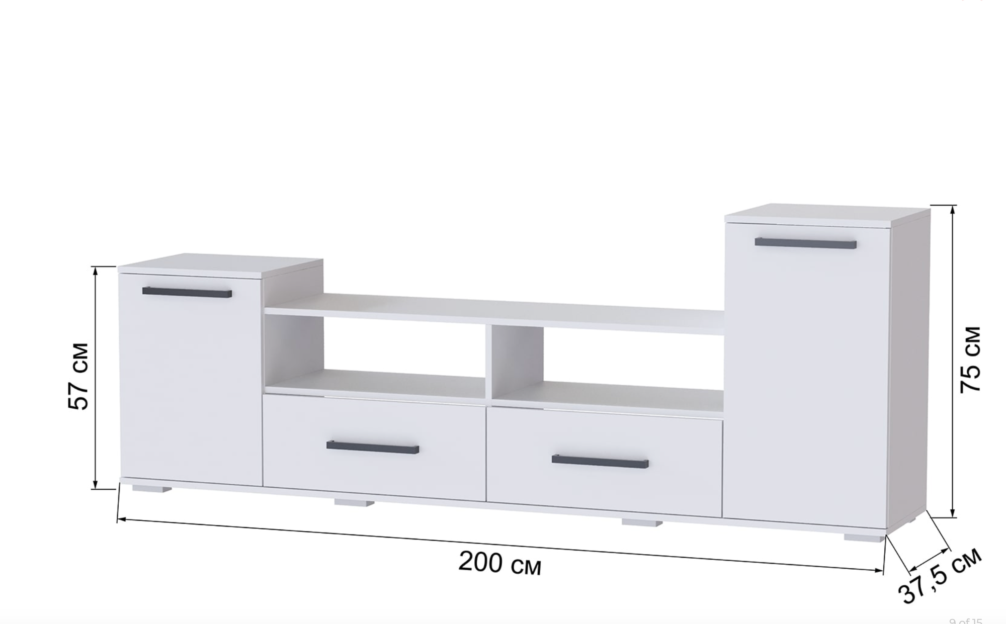 Тумба под телевизор напольная с ящиками тэкс, Парус-2, 200х37,5х75см, белый