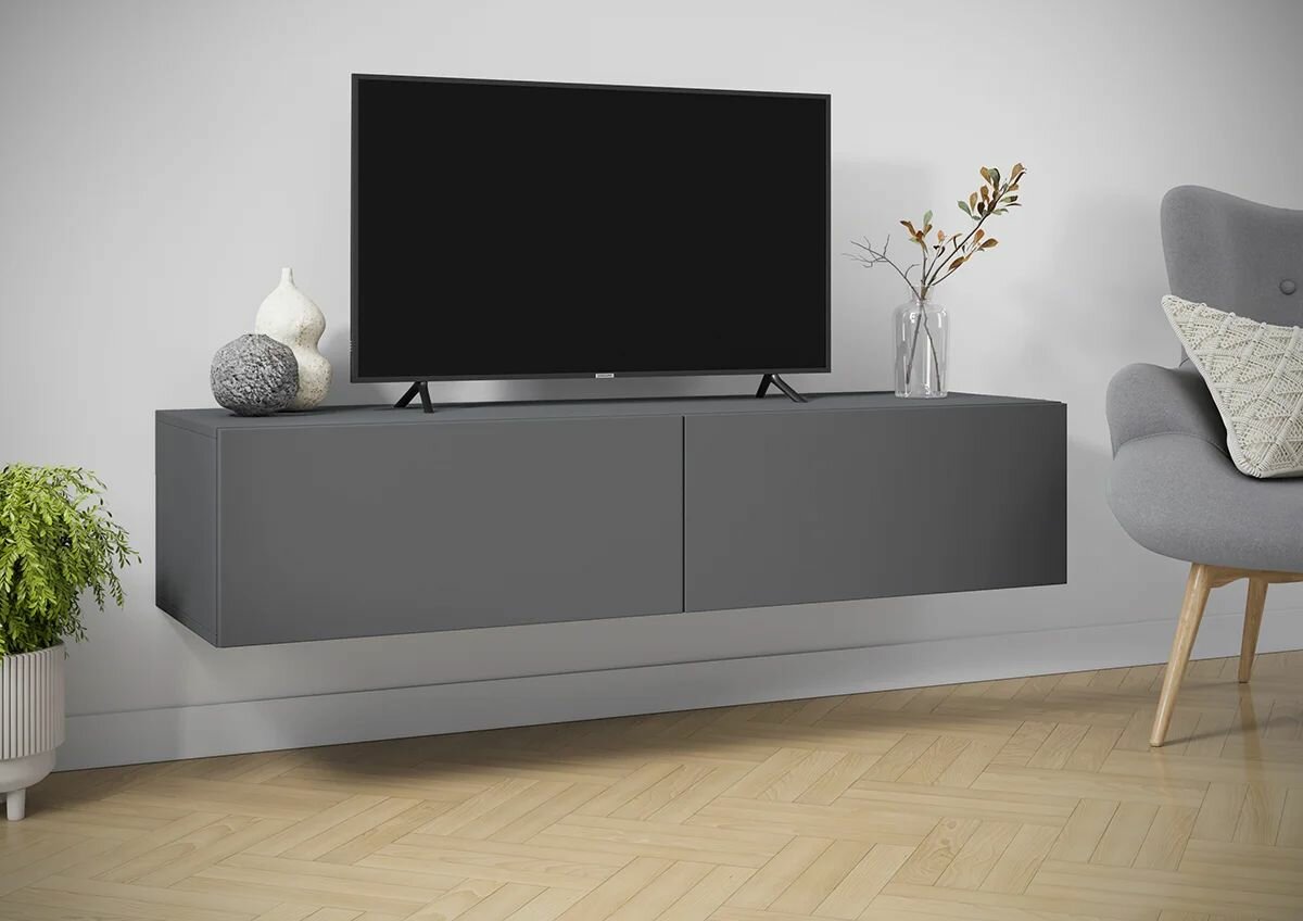 Тумба под ТВ Айден ТБН06-1400 серый ЛДСП/серый ЛДСП