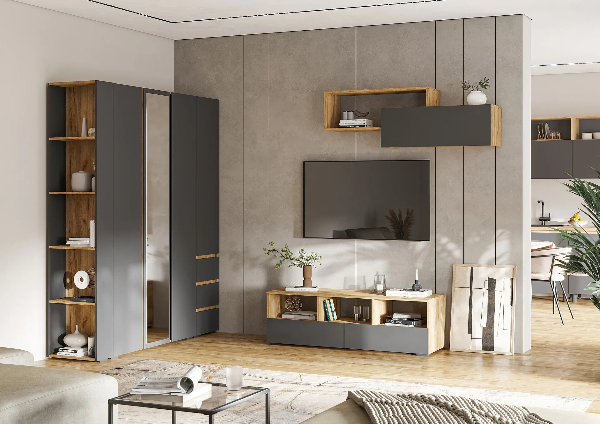 Тумба под ТВ Даллас ТБ 02, дуб каньон/МДФ софт графит