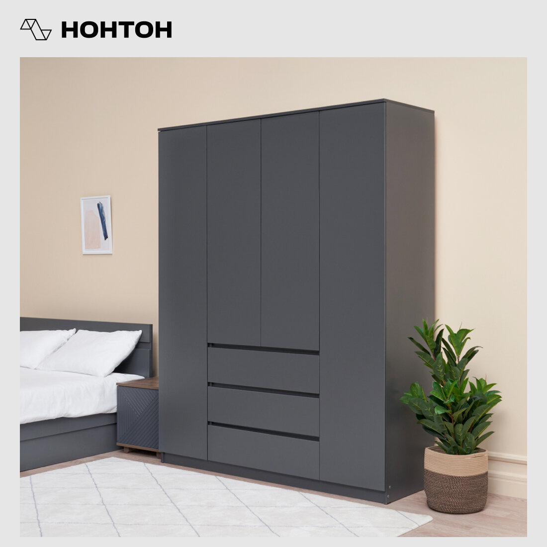 Шкаф 4-х дверный Миф Челси, 3 ящика, графит 160.2х51.4х202.2 см
