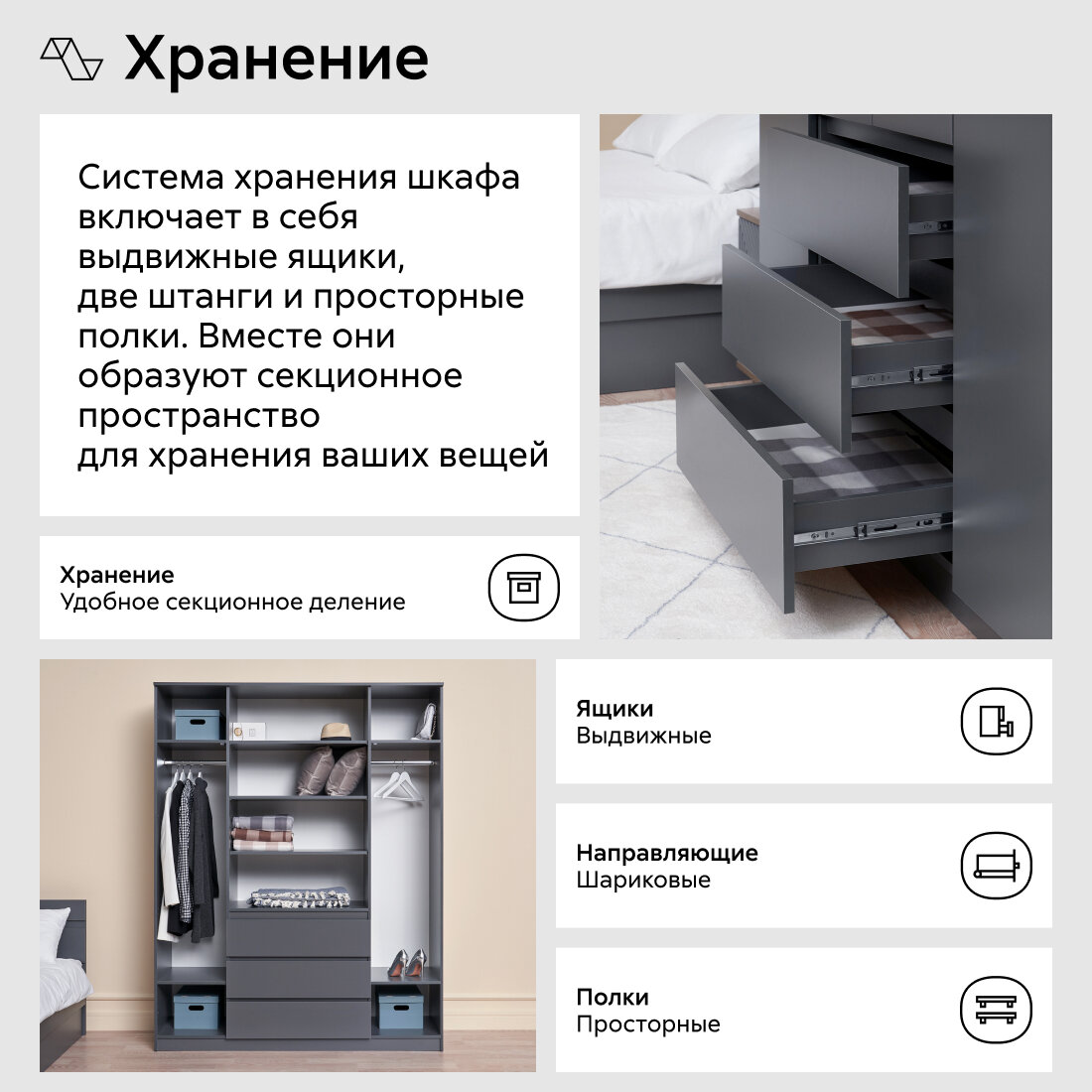СохранитьШкаф для одежды распашной Нонтон Челси, графит, 160 см, с тремя ящиками интересное: