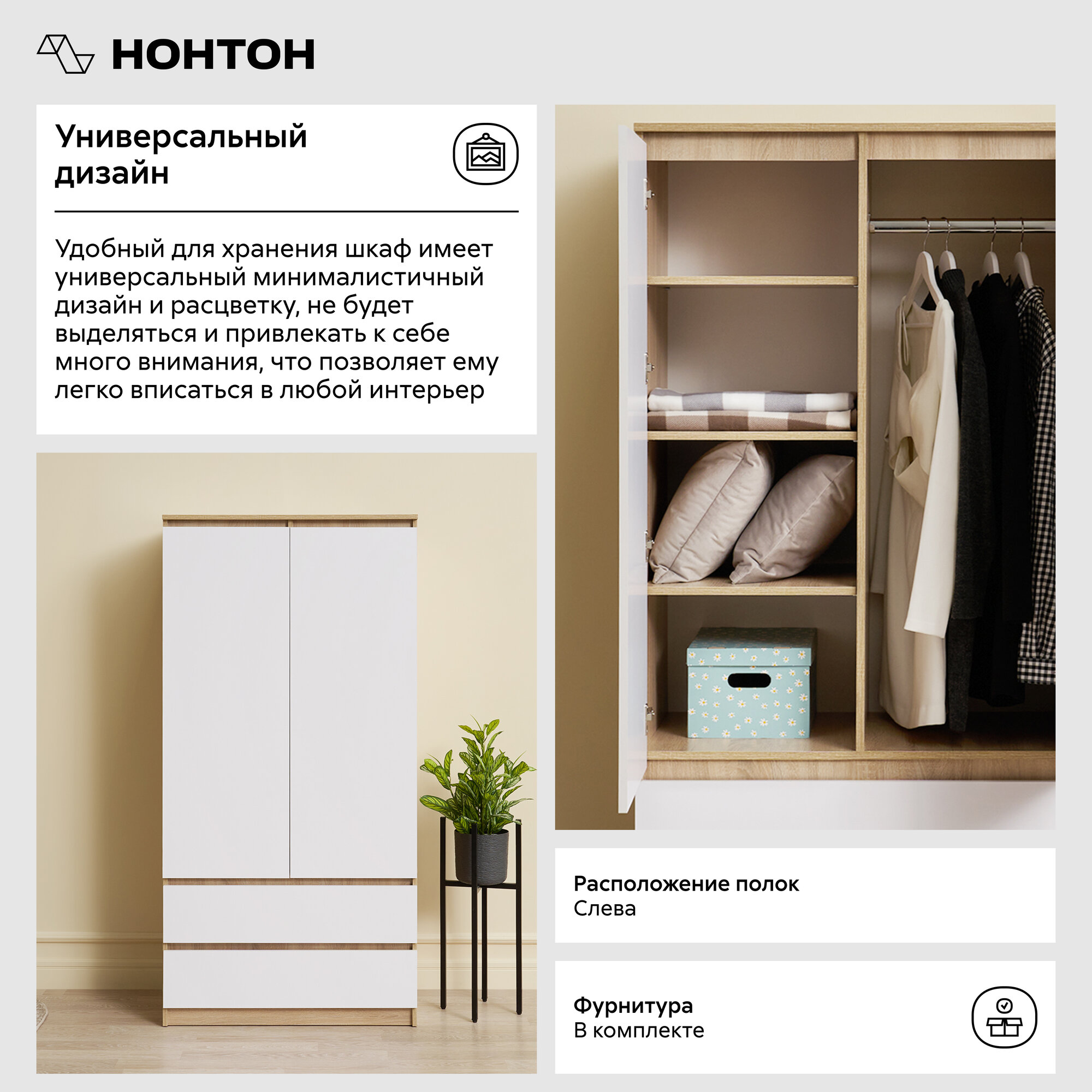 СохранитьШкаф для одежды распашной с ящиками Нонтон Челси, дуб сонома / белый глянец, 90 см интересное: