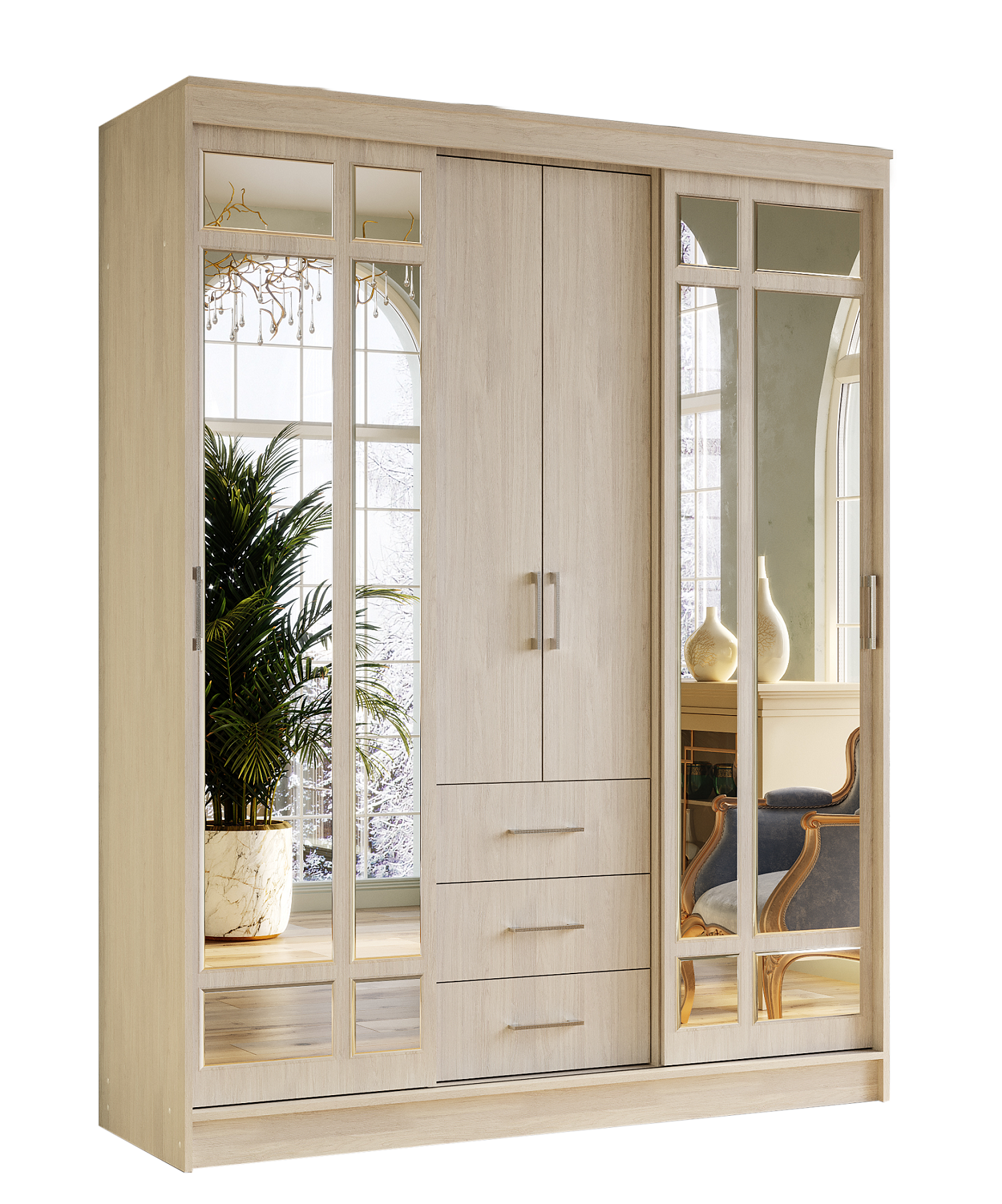 Шкаф-купе для одежды с зеркалом и ящиками Нонтон Маэстро, венге / лоредо, 170 см