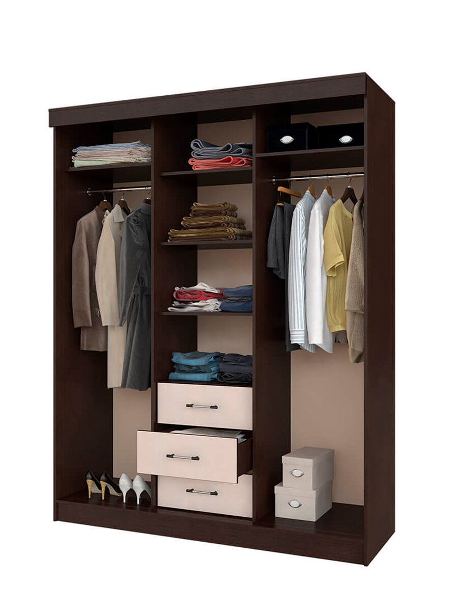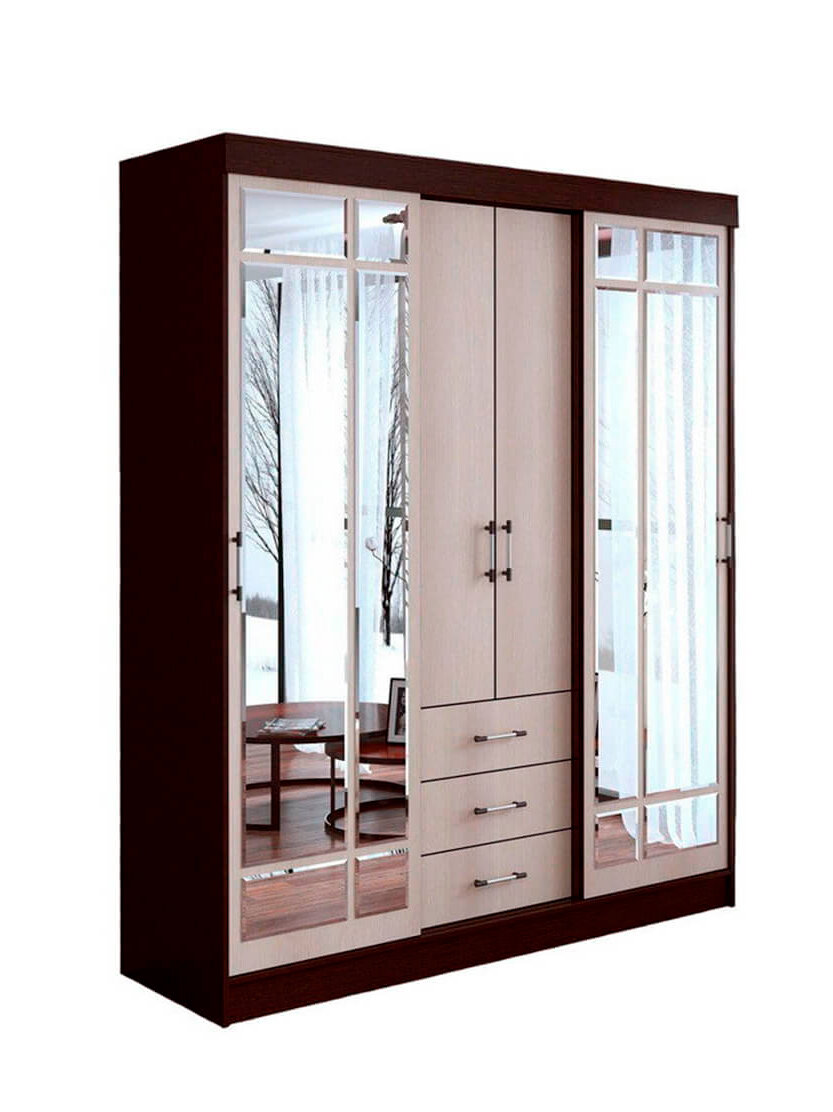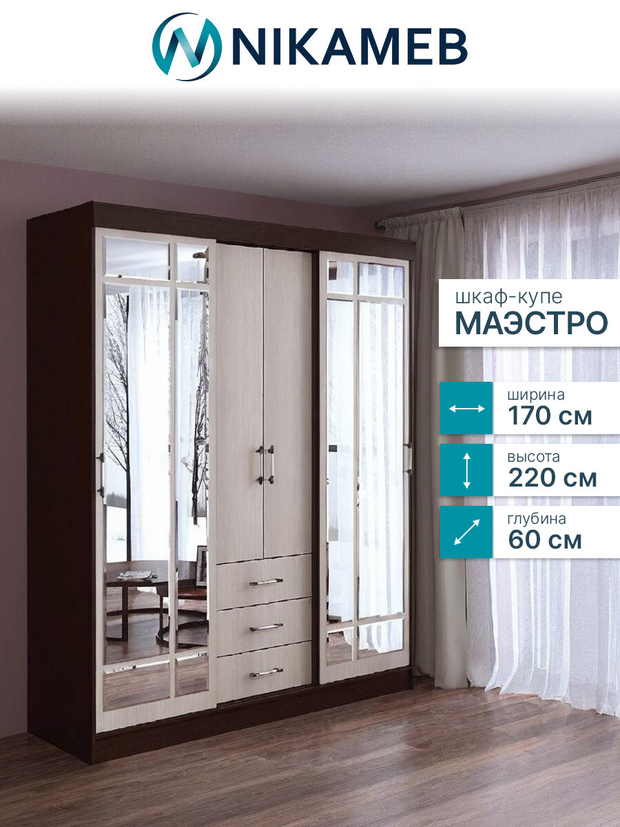 Шкаф-купе для одежды с зеркалом и ящиками Нонтон Маэстро, венге / лоредо, 170 см