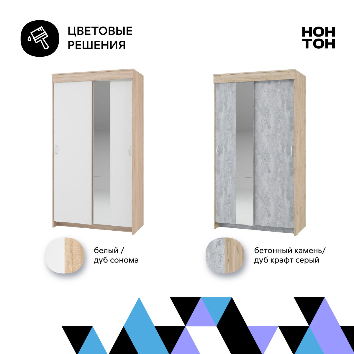 Шкаф-купе для одежды Нонтон Бассо, 2 зеркала, дуб крафт серый / бетонный камень 100 см