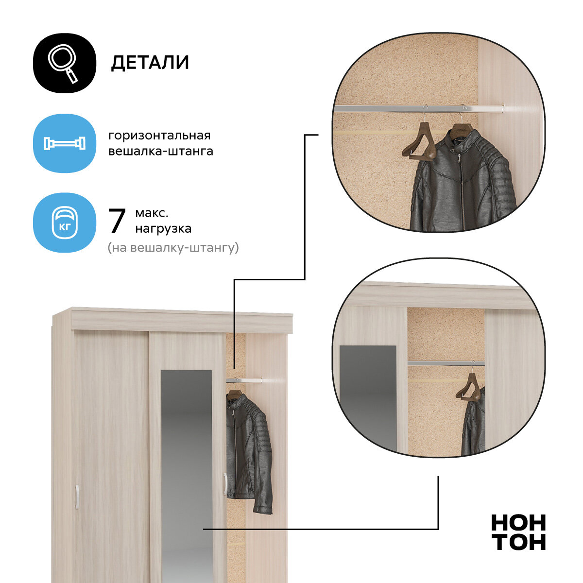 Шкаф-купе для одежды Нонтон Бассо, ясень анкор светлый 130 см