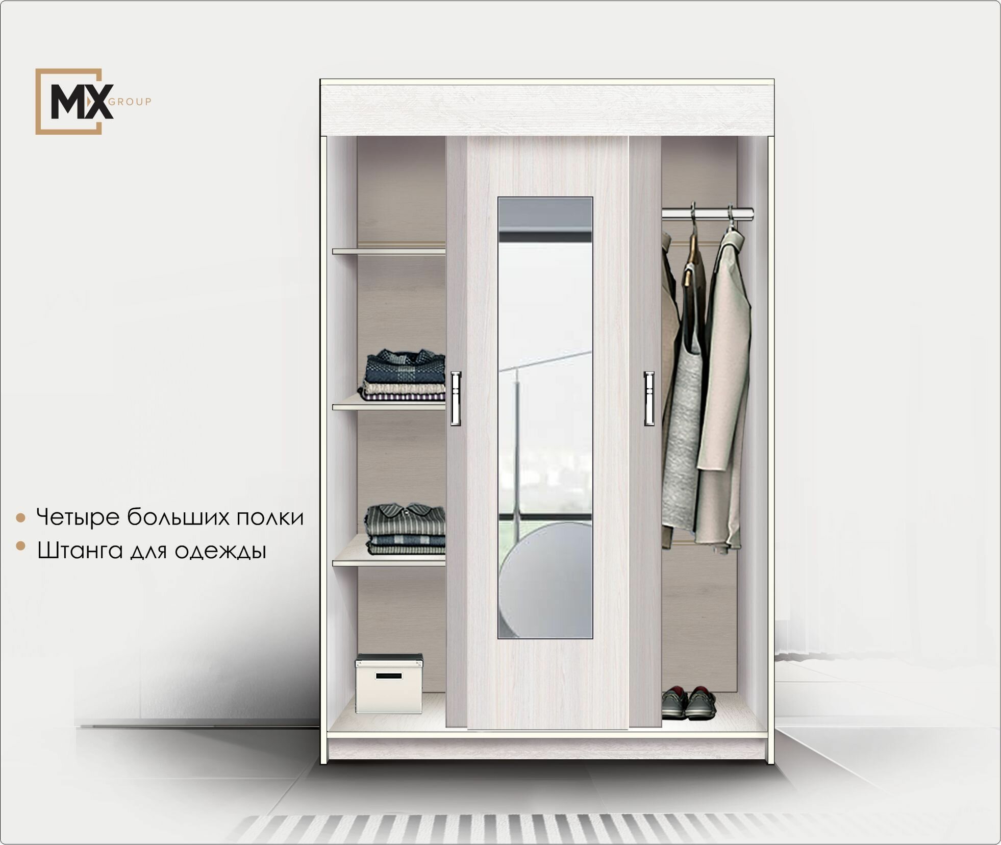| Особенности | дверь со стеклом, с зеркалом, штанга для вешалок |