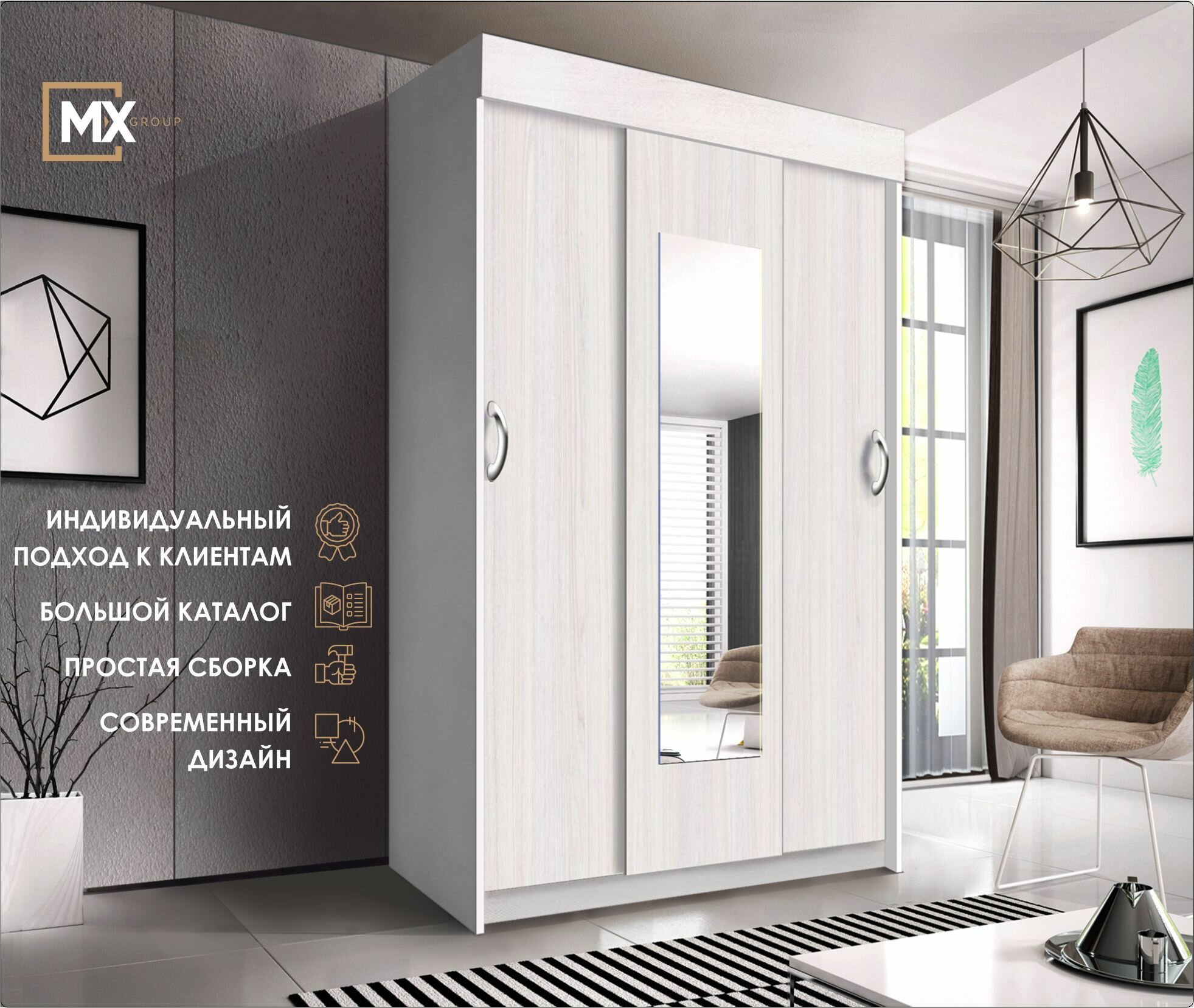 Шкаф-купе Интерьер-Центр Бассо трехдверный белое дерево 130х50х202 см