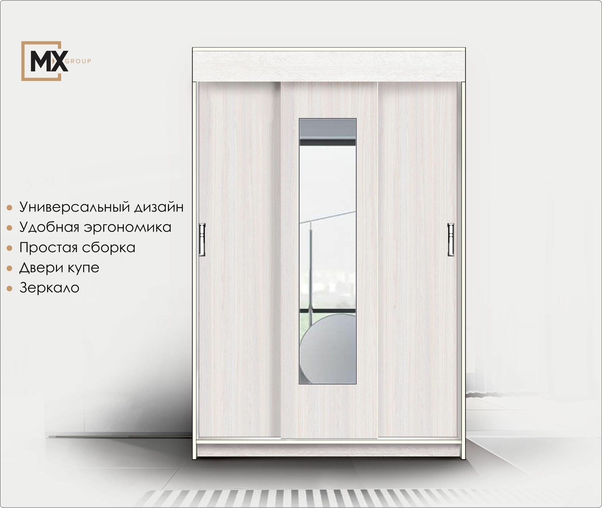 Шкаф-купе "Бассо" 1,3 м - ясень анкор светлый