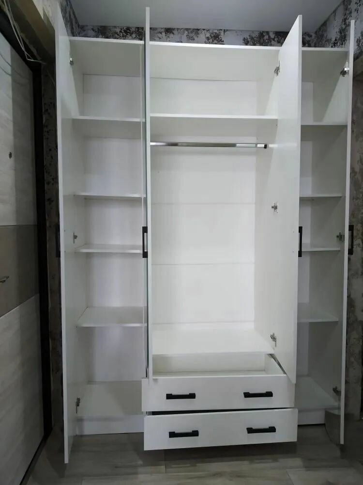 | Комплектация | Два отделения с полками ,одно отделение со штангой и нишей ,два выдвижных ящика. |