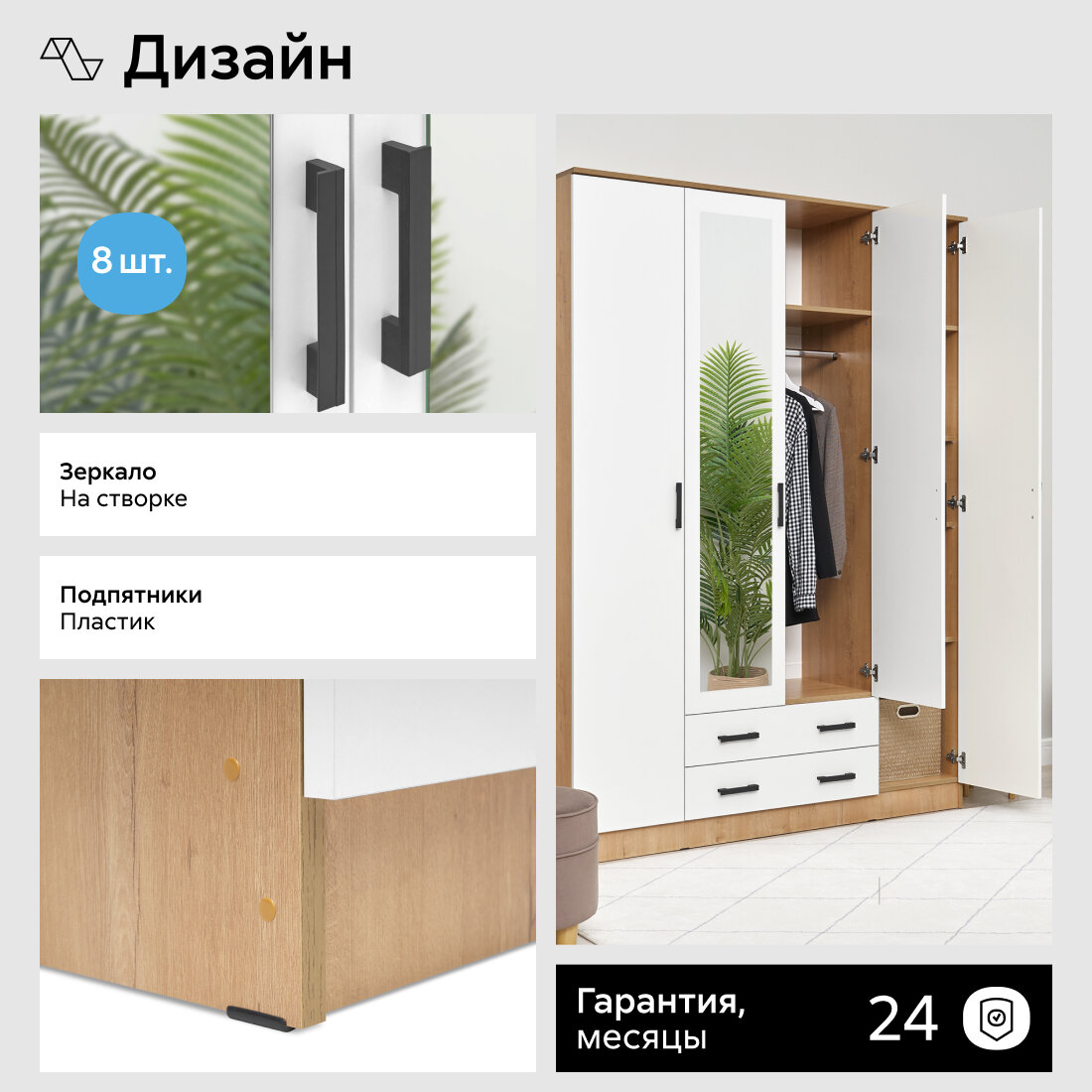 Купить Шкаф для одежды распашной с зеркалом и ящиками Нонтон Квадро, дуб вотан / белый, 160 см
