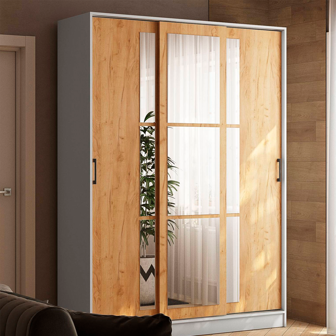Шкаф-купе «Стиль-2» 1600 с зеркалами, 3 двери, белый/дуб крафт золотой (1600х520х2200)