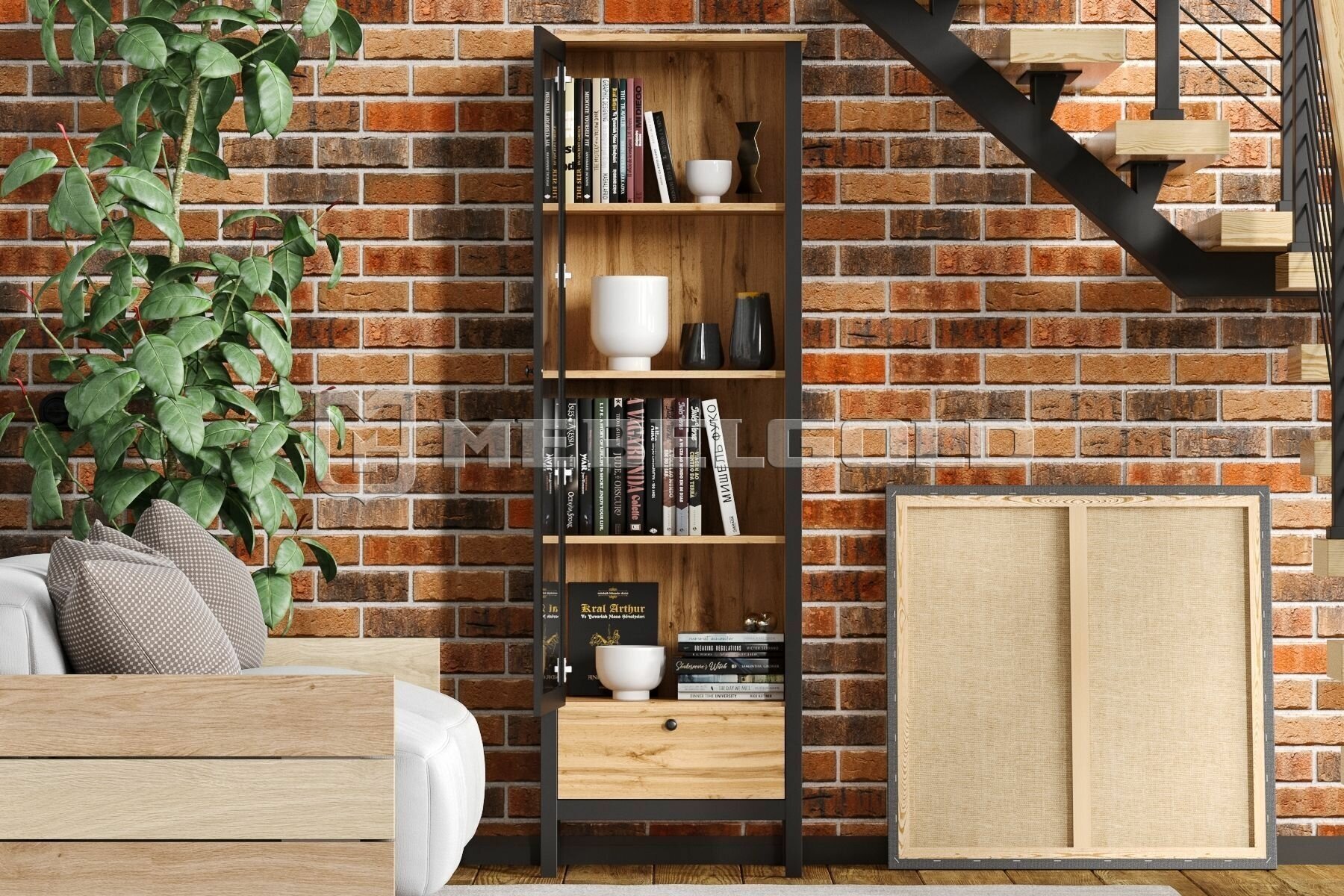 Витрина Loft REG1W1S (Дуб вотан/Черный матовый) Black Red White 2 уп.
