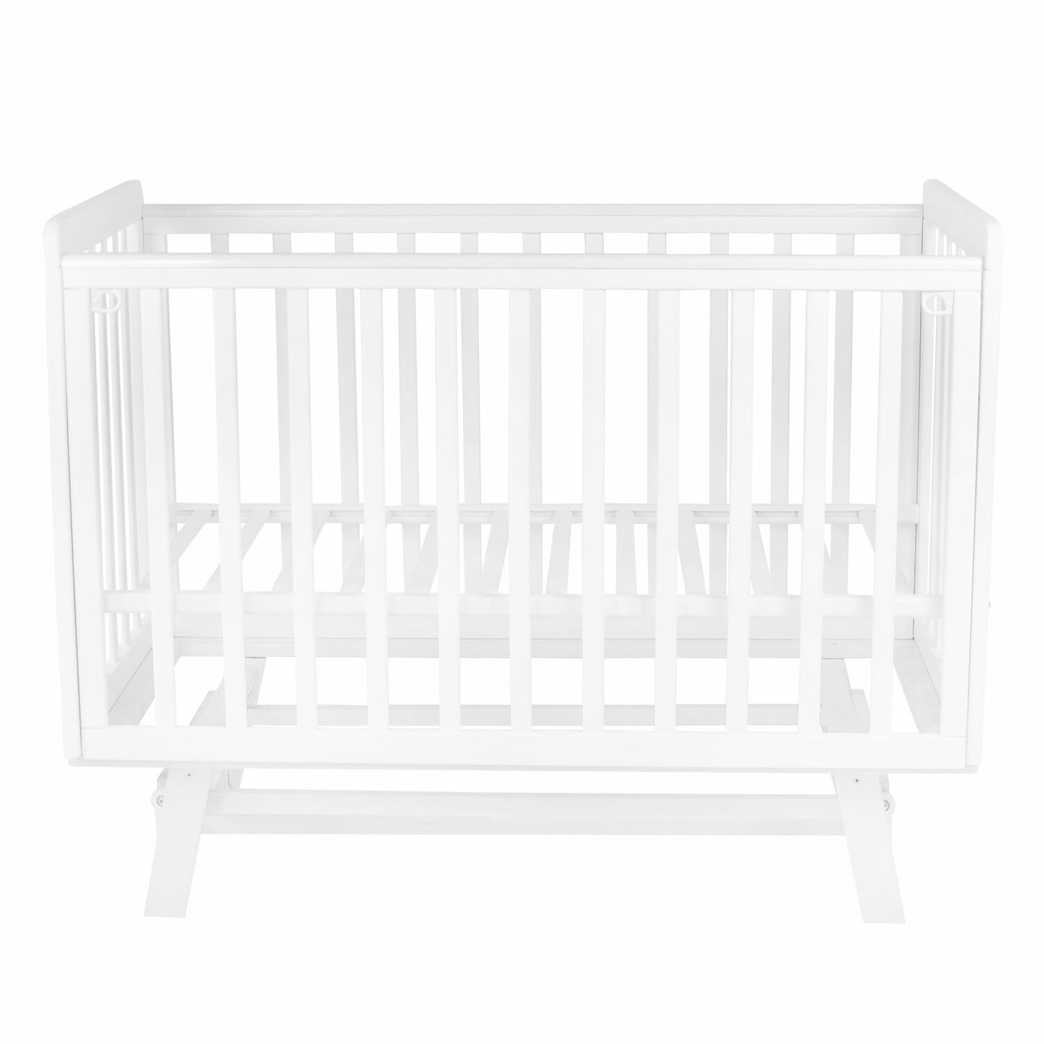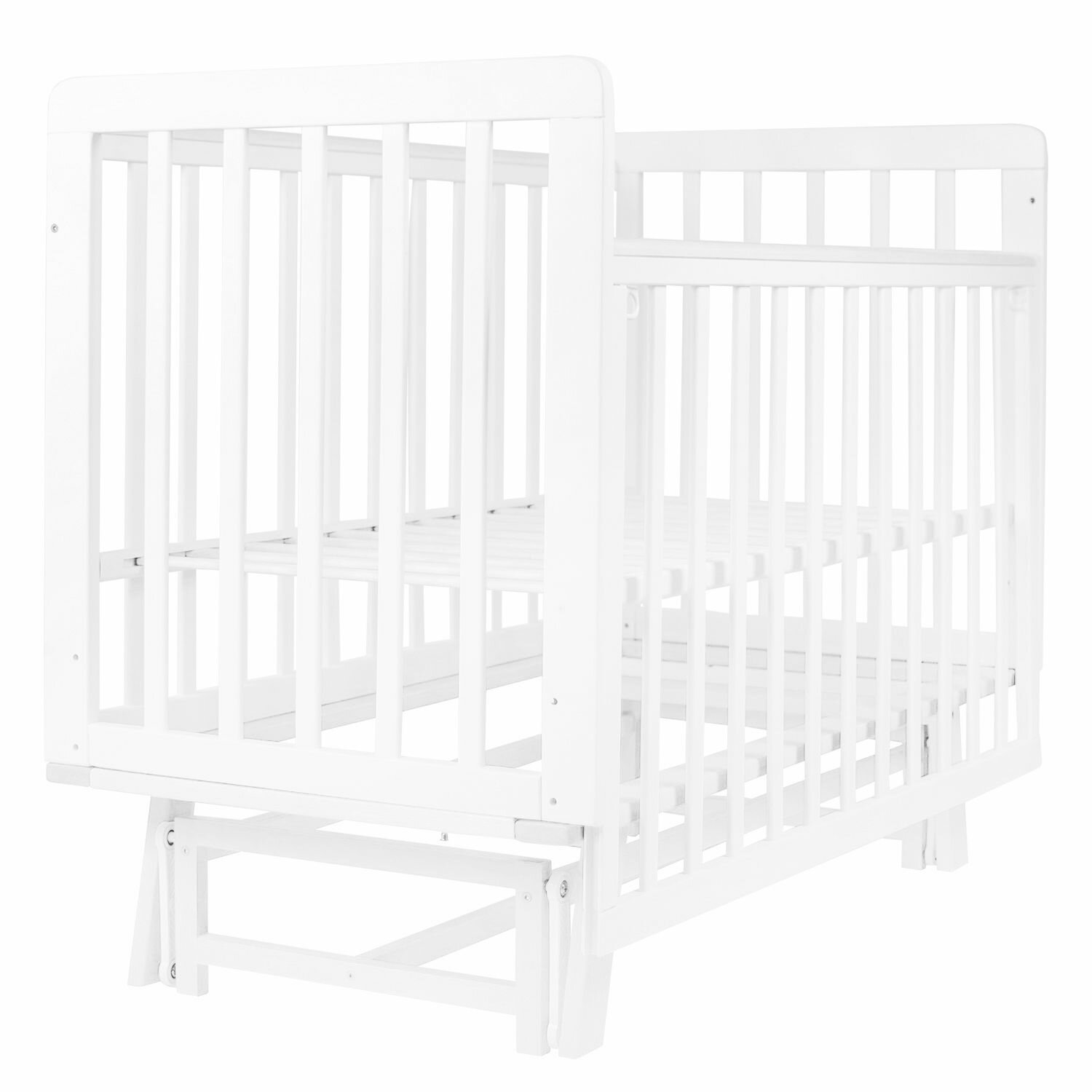 Купить Кроватка детская Indigo Style IN-02 для новорожденных с маятником, легкосъемная стенка, ножки, массив березы, белый-белый