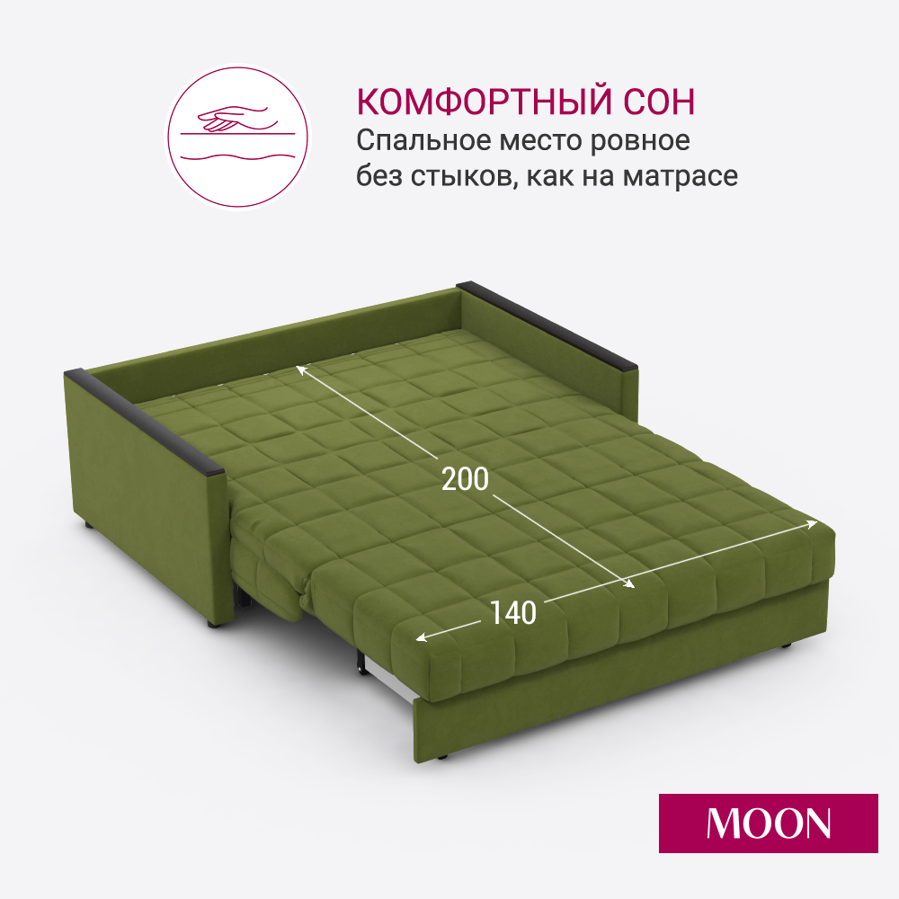 СохранитьДиван-кровать раскладной аккордеон MOON FAMILY 134, зеленый велюр, 155х104х90, спальное место 140х200, Эксклюзивная пена UniqFoam (арт Z000076) интересное: