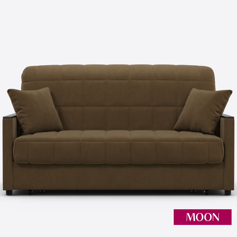 Диван-кровать раскладной аккордеон MOON FAMILY 134, велюр коричневый, 155х104х90 Эксклюзивная пена UniqFoam (арт Z000079)
