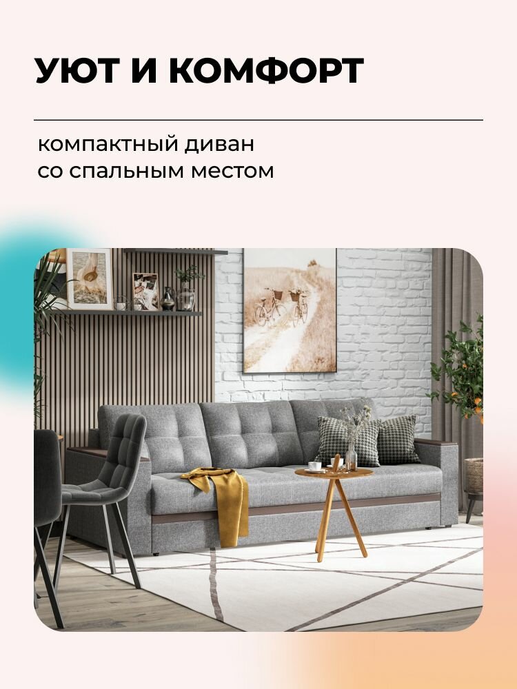 Диван-кровать с ящиком для хранения Атланта Люкс SE, еврокнижка, рогожка Malmo серый, 223х98х87 см интересное: