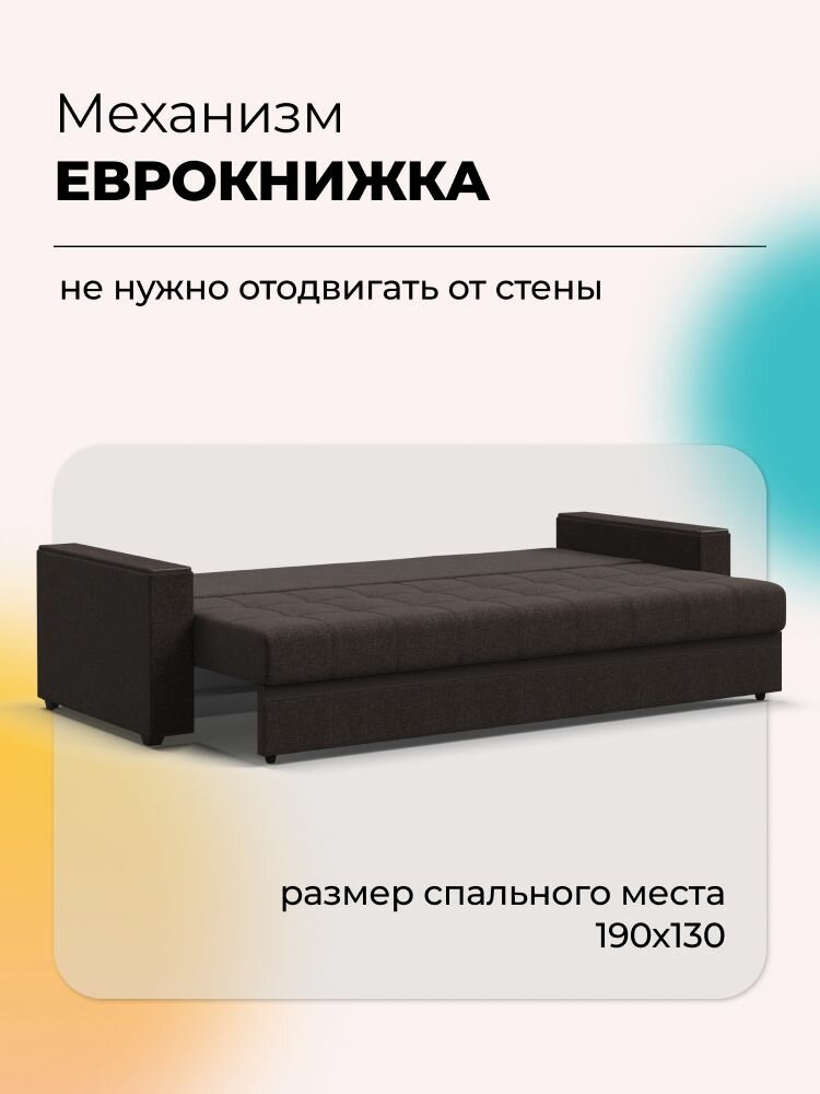 Диван-кровать с ящиком для хранения Атланта Люкс SE, еврокнижка, рогожка Malmo шоколад, 223х98х87 см интересное: