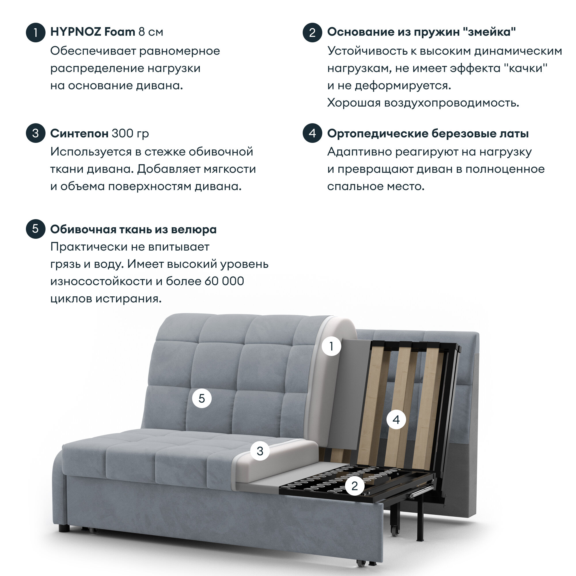 Диван HYPNOZ Frontera 140, механизм аккордеон, Светло-серый интересное: