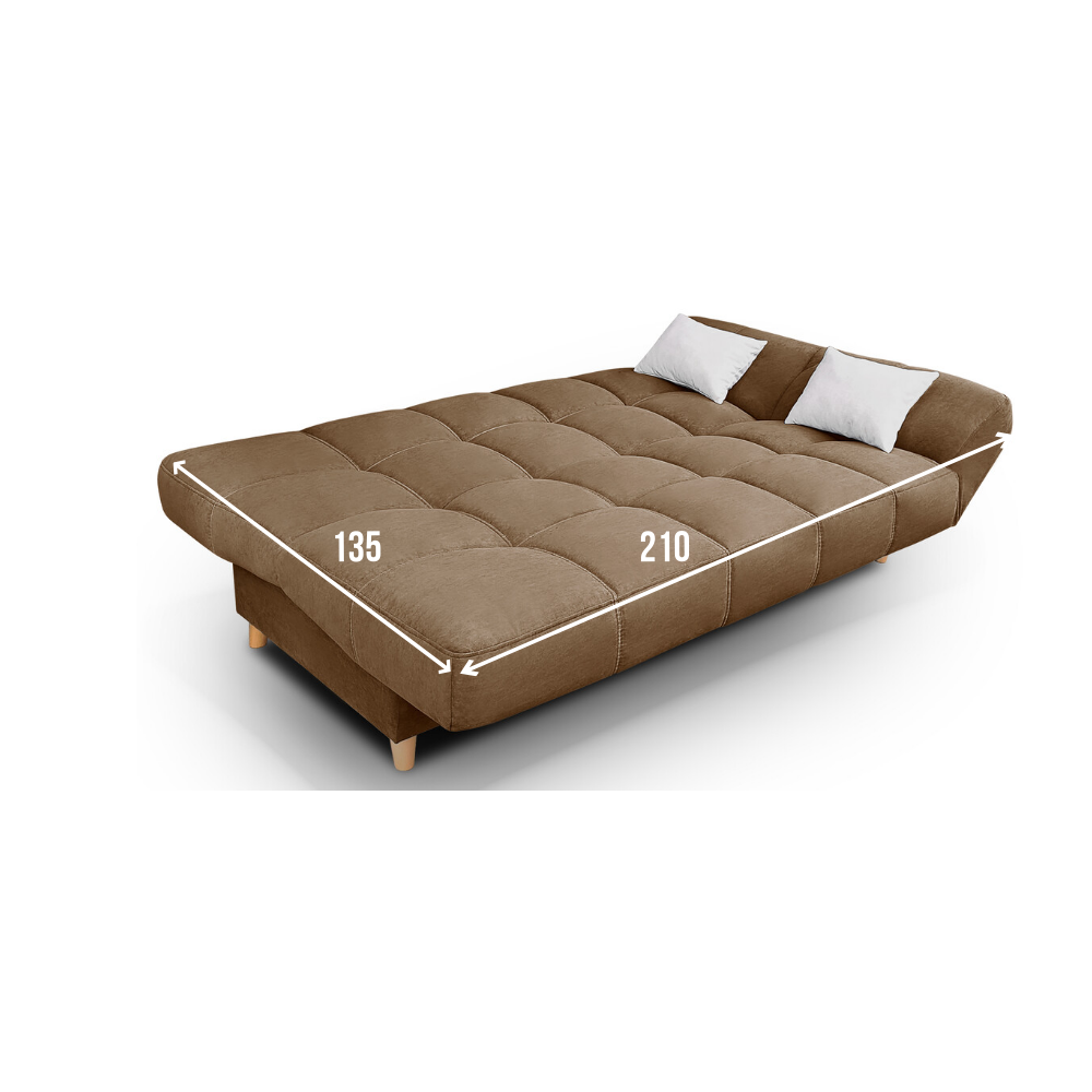 Саймон-прямой диван кровать Саймон ортопедический(коричневый)с ящиком для белья,без подлокотников,с пружинным блоком,механизм клик-кляк, 210х90х105см