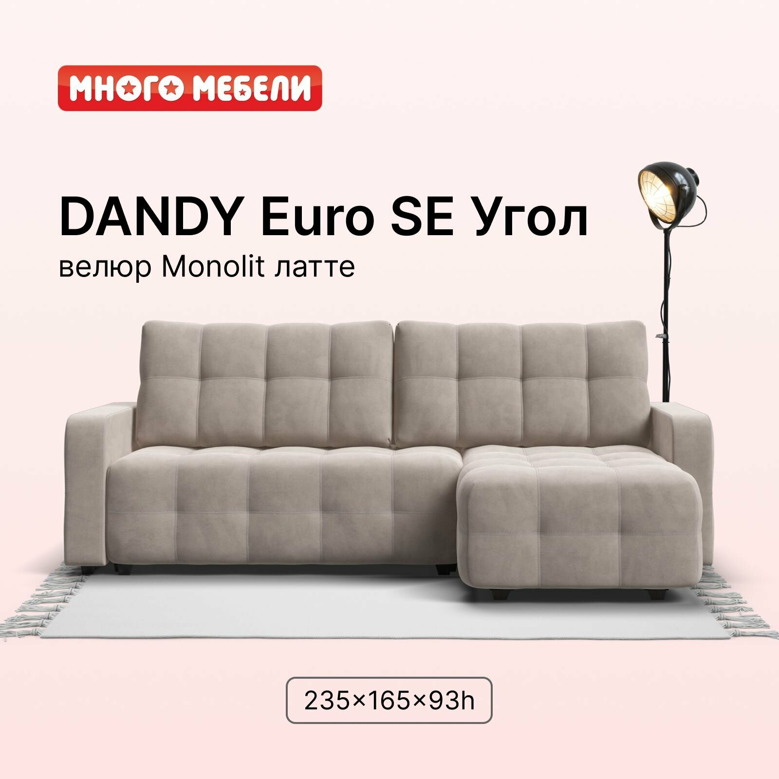 Угловой диван Много мебели Dandy 2.0, велюр Monolit латте, 235х165х89 см