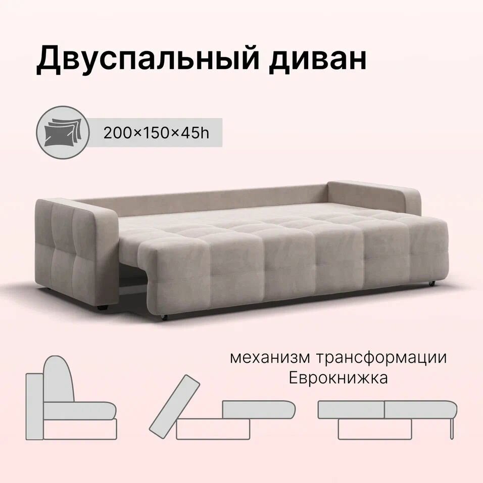 СохранитьПрямой диван-кровать с ящиком для хранения DANDY Euro SE, велюр Monolit латте, 235x105x92 см интересное: