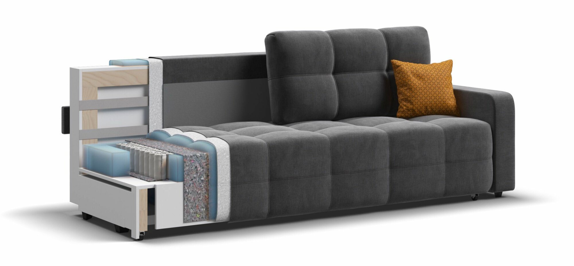 Купить Прямой диван-кровать с ящиком для хранения DANDY Euro SE, велюр Monolit серый, 235x105x92 см