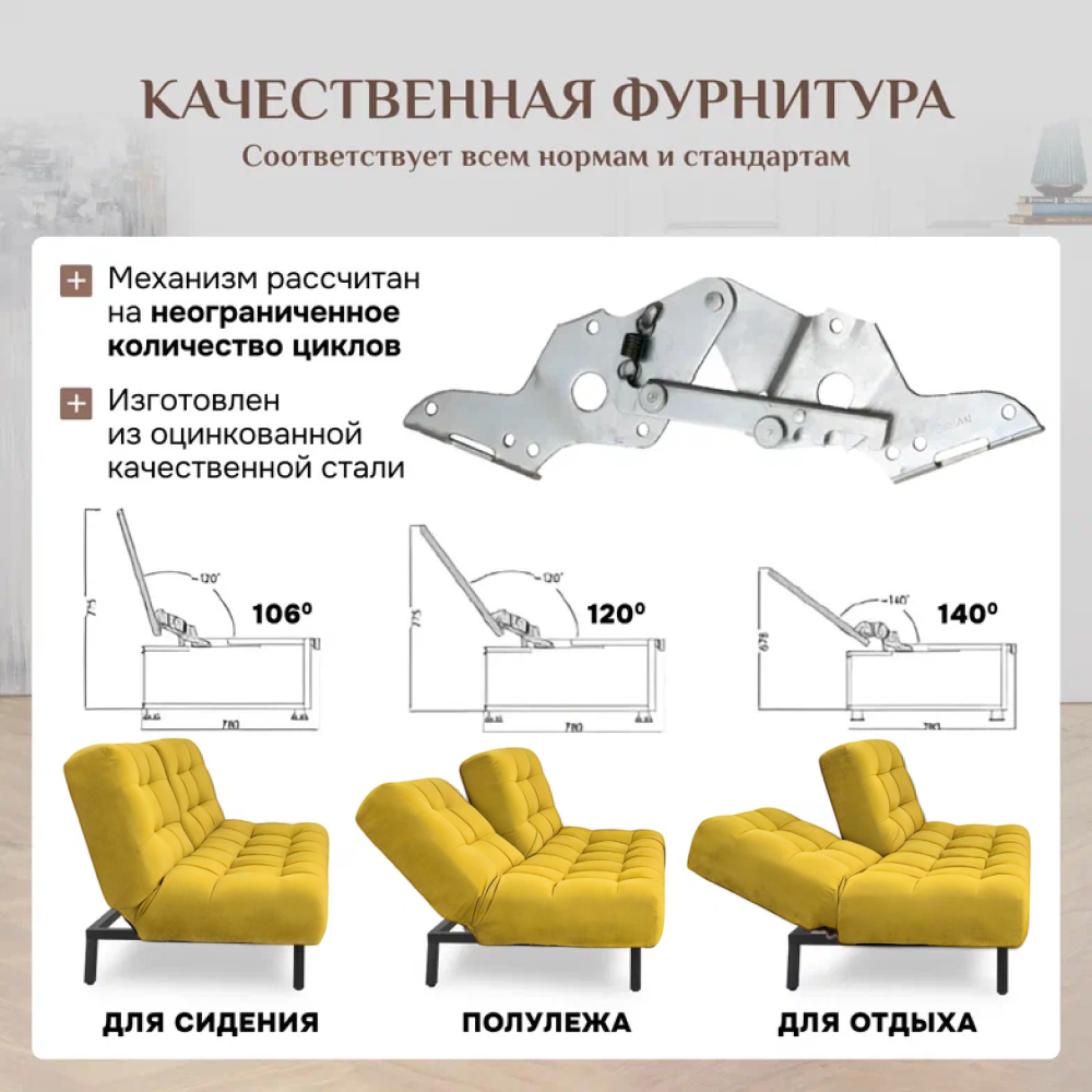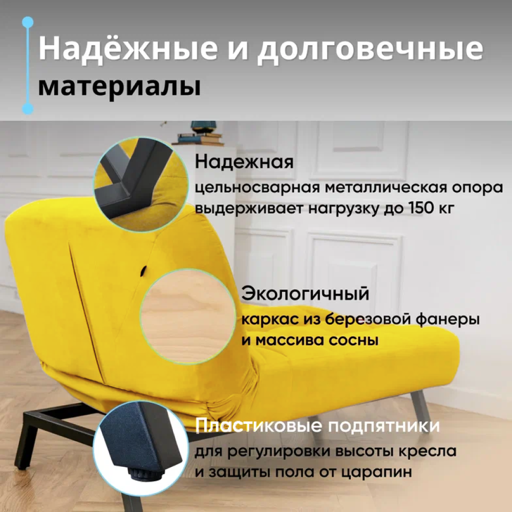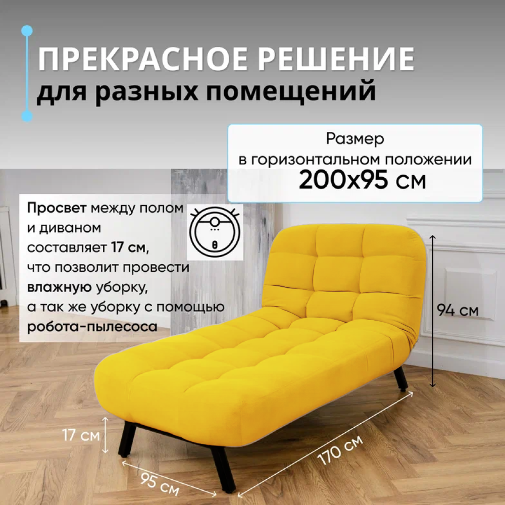 СохранитьКушетка оттоманка Brendoss 310 раскладная клик-кляк на металлокаркасе материал износостойкий велюр, цвет желтый интересное: