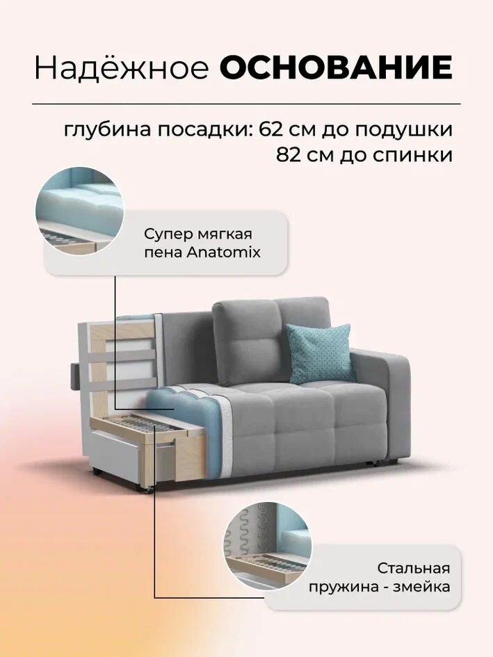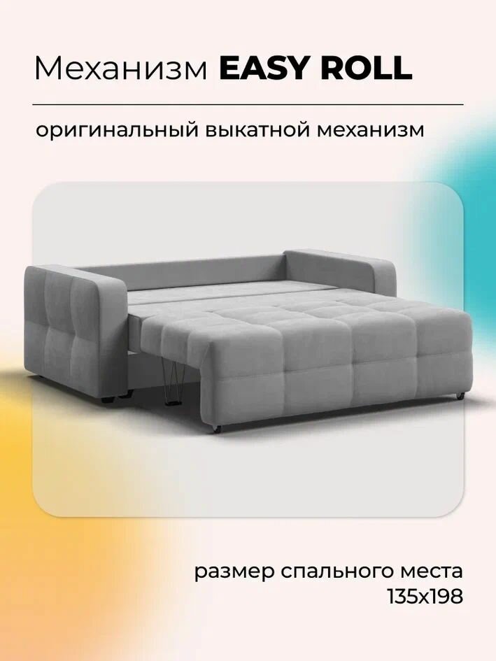 Диван-кровать Dandy Compact, механизм выкатной easy roll, велюр Monolit серый, 167х112х88 см