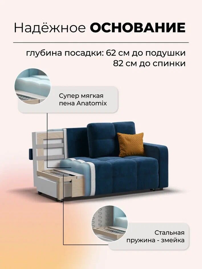 СохранитьДиван-кровать Dandy Compact, механизм выкатной easy roll, велюр Monolit синий, 167х112х88 см интересное: