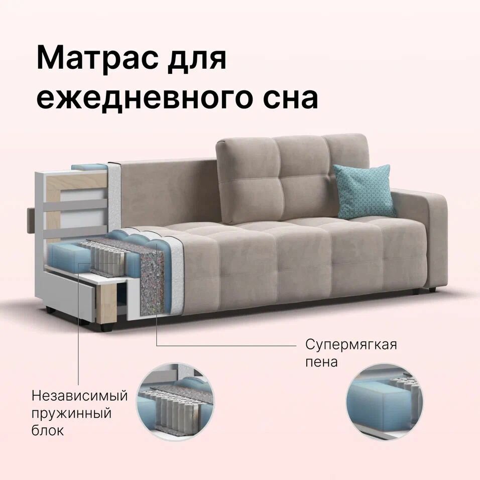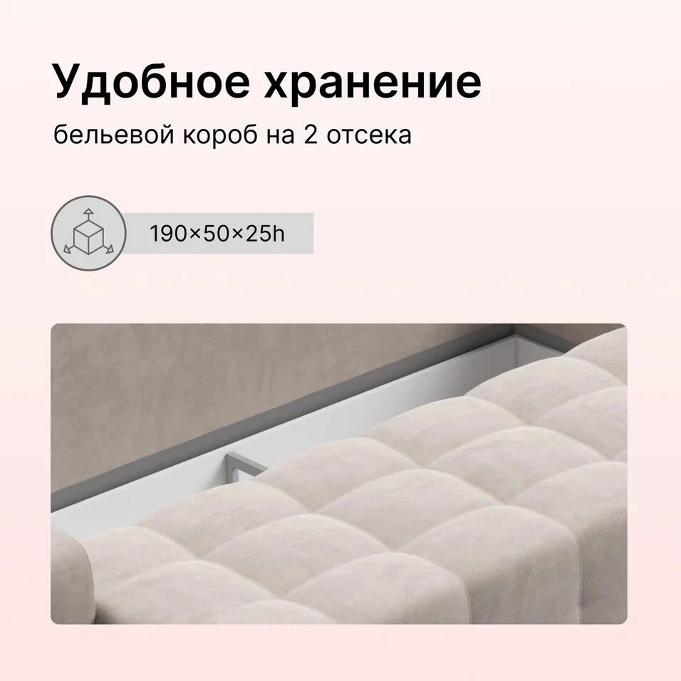 СохранитьДиван-кровать с ящиком для хранения Dandy 2.0, пантограф, велюр Monolit латте, 235х105х92 см интересное:
