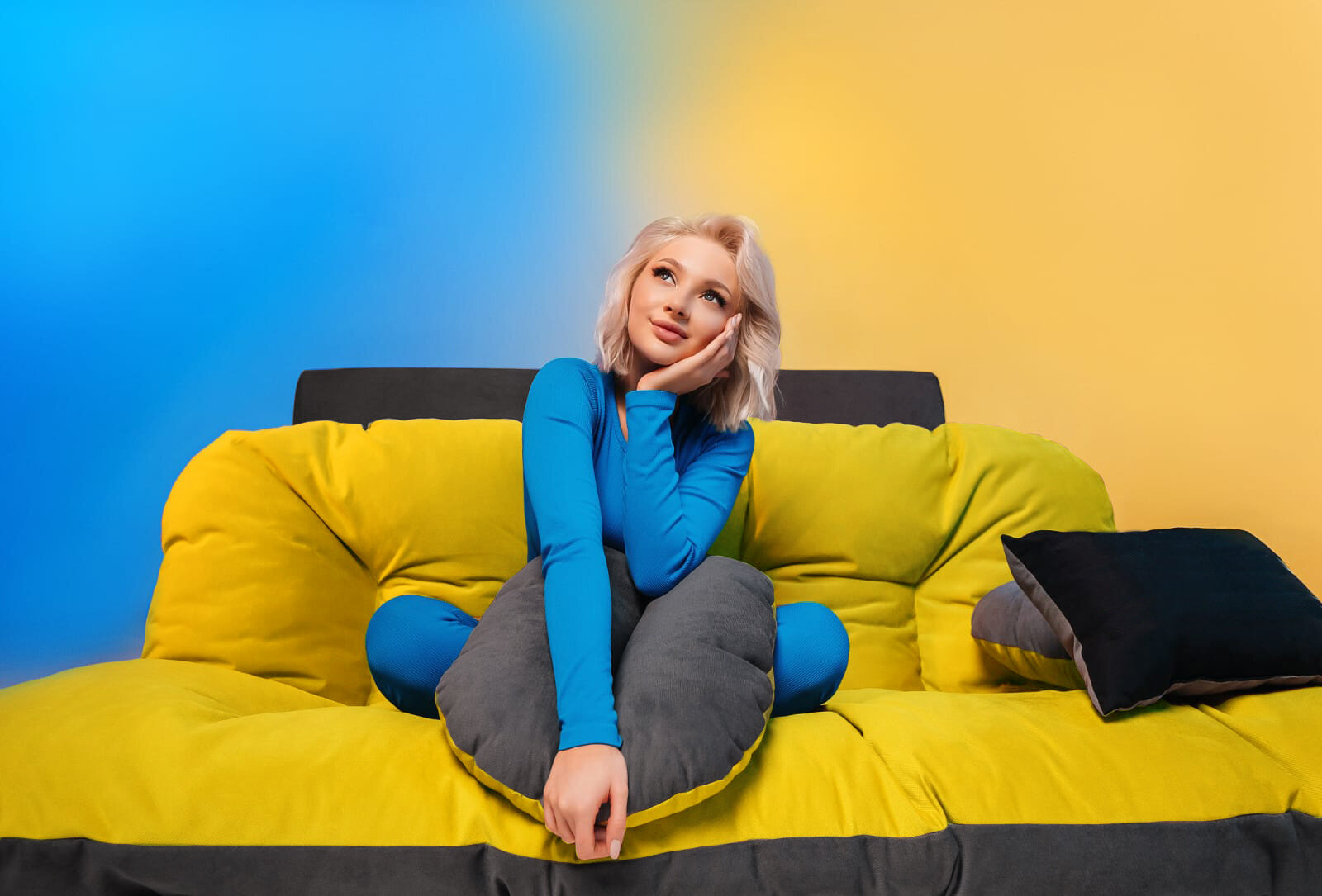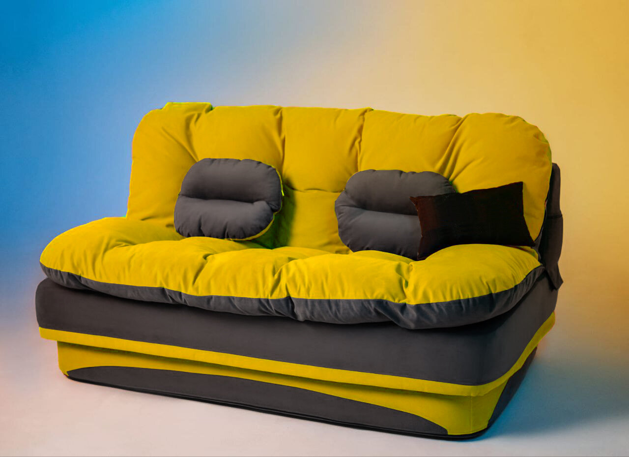 Диван кровать бескаркасный Байкал 190*98 см, спальное место 190*130 см, желтый с серым